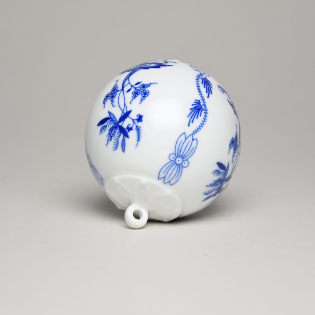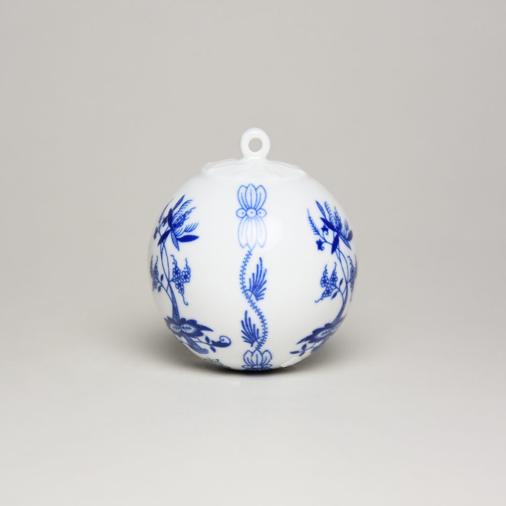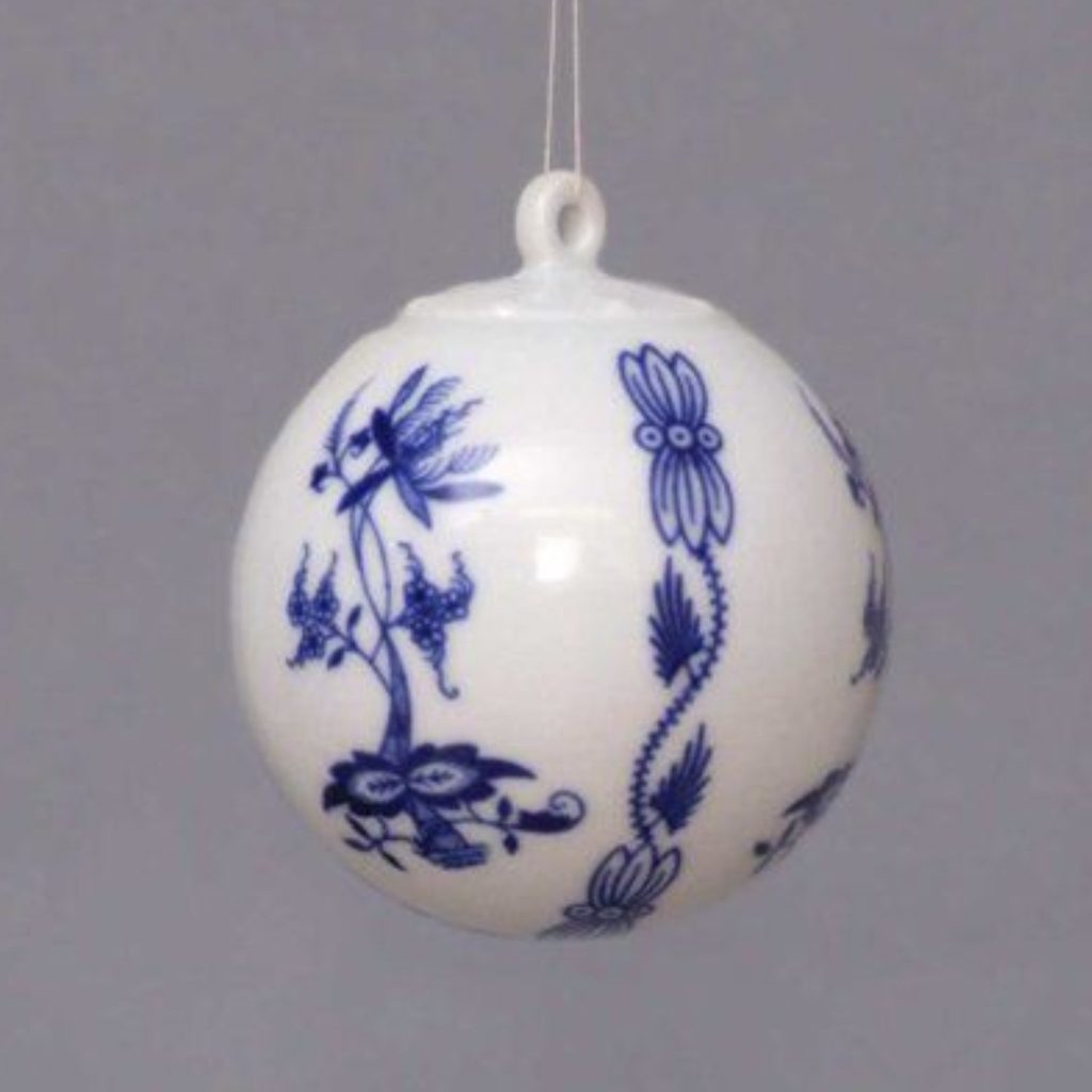 Porcelánová Vánoční ozdoba, kterou si můžete zavěsit nejen na stromeček. Koule - cibulákový dekor. Z tradiční české porcelánky v Dubí.