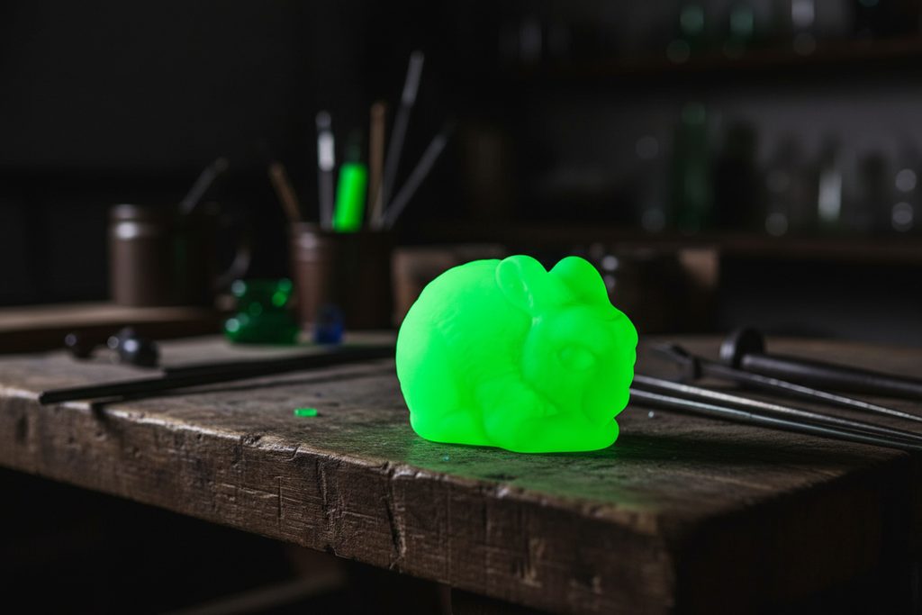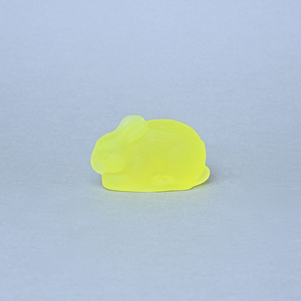 Dekorativní skleněný králík z pravého uranového skla, ručně vyrobené ve Sklárně Janov.
