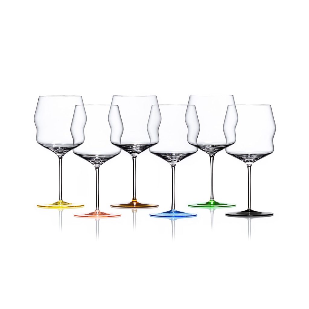 Harlekýn - křišťálová ručně vyráběná designová sklenice na víno z kolekce Kalyke od tradiční české sklárny Květná 1794 s dlouholetou tradicí výroby ručně foukaného a tvarovaného skla.