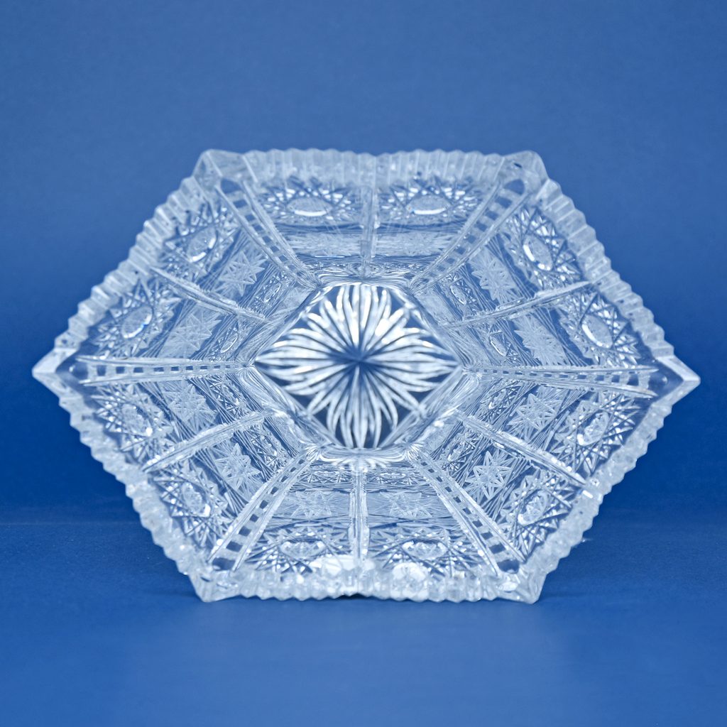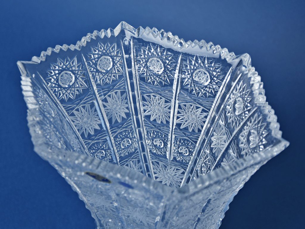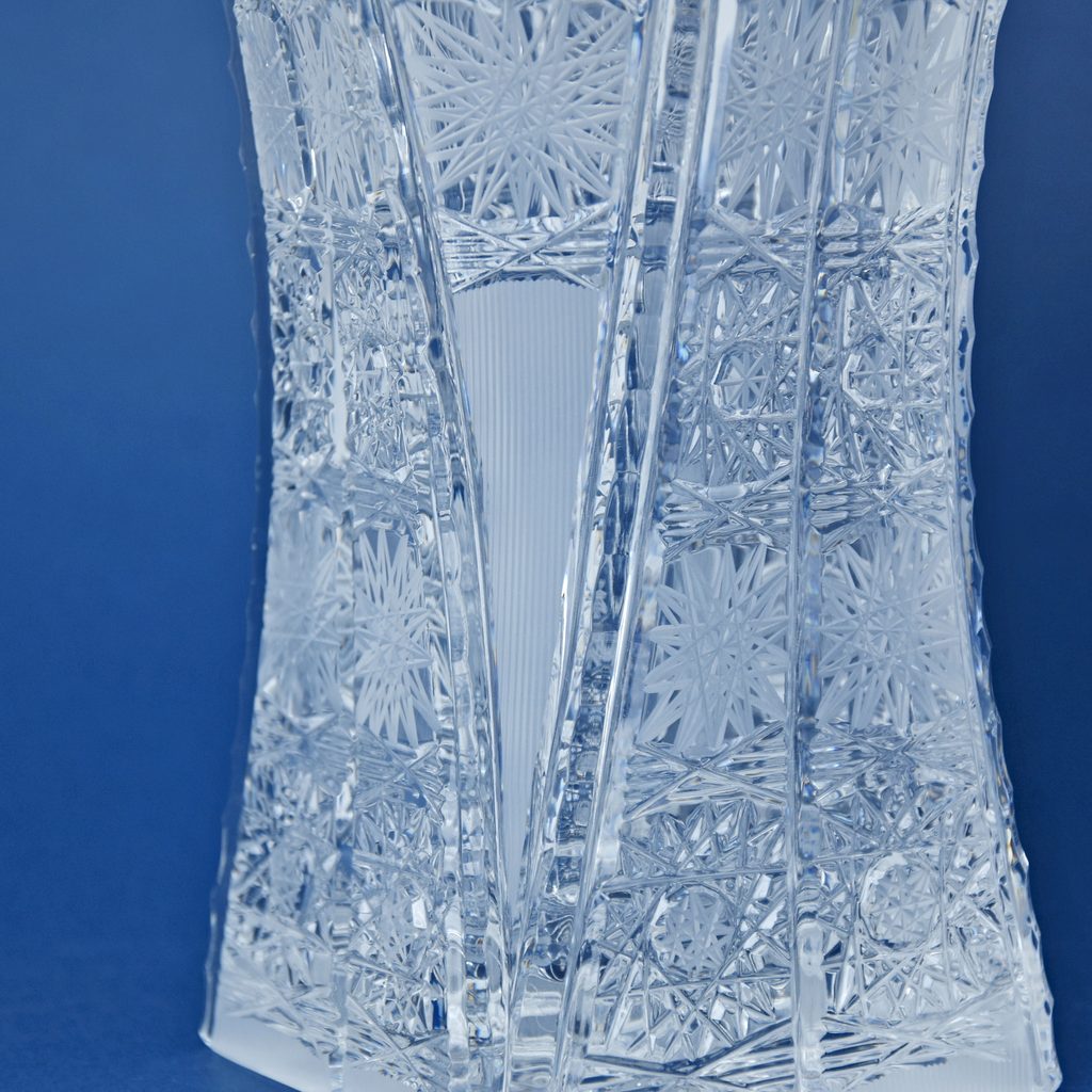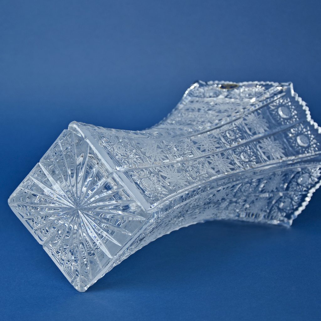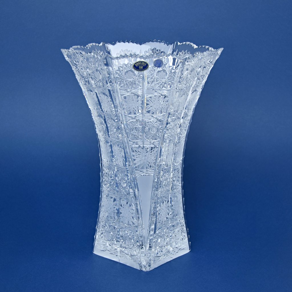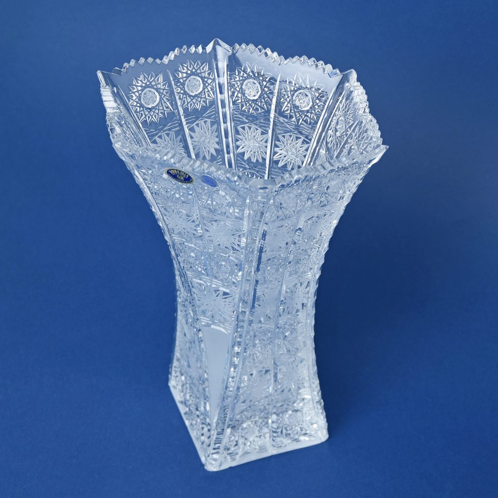 Ručně broušená masivní křišťálová váza z českého olovnatého křišťálu 24% PbO. Vyrobena ve sklárně Crystal Bohemia, sídlící v Poděbradech a Světlé nad Sázavou. Váza má nádherný atypický tvar - šestihranný tvar navrchu se směrem dolů sbíhá do čtvercového dna. Je velice zdobná a dekorativní z poměrně masivního křišťálu, tudíž udrží bez problému i větší těžší kytici květin. Nádherný dar.