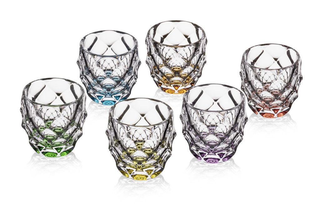 Krásný luxusní set sklenic na likér 6 ks z českého bezolovnatého křišťálu (Aurum Crystal - Světlá nad Sázavou). Sada z kolekce Morris v různých barvách barvě. Díky svému krásnému designu krásně vynikne v každé moderní domácnosti.
