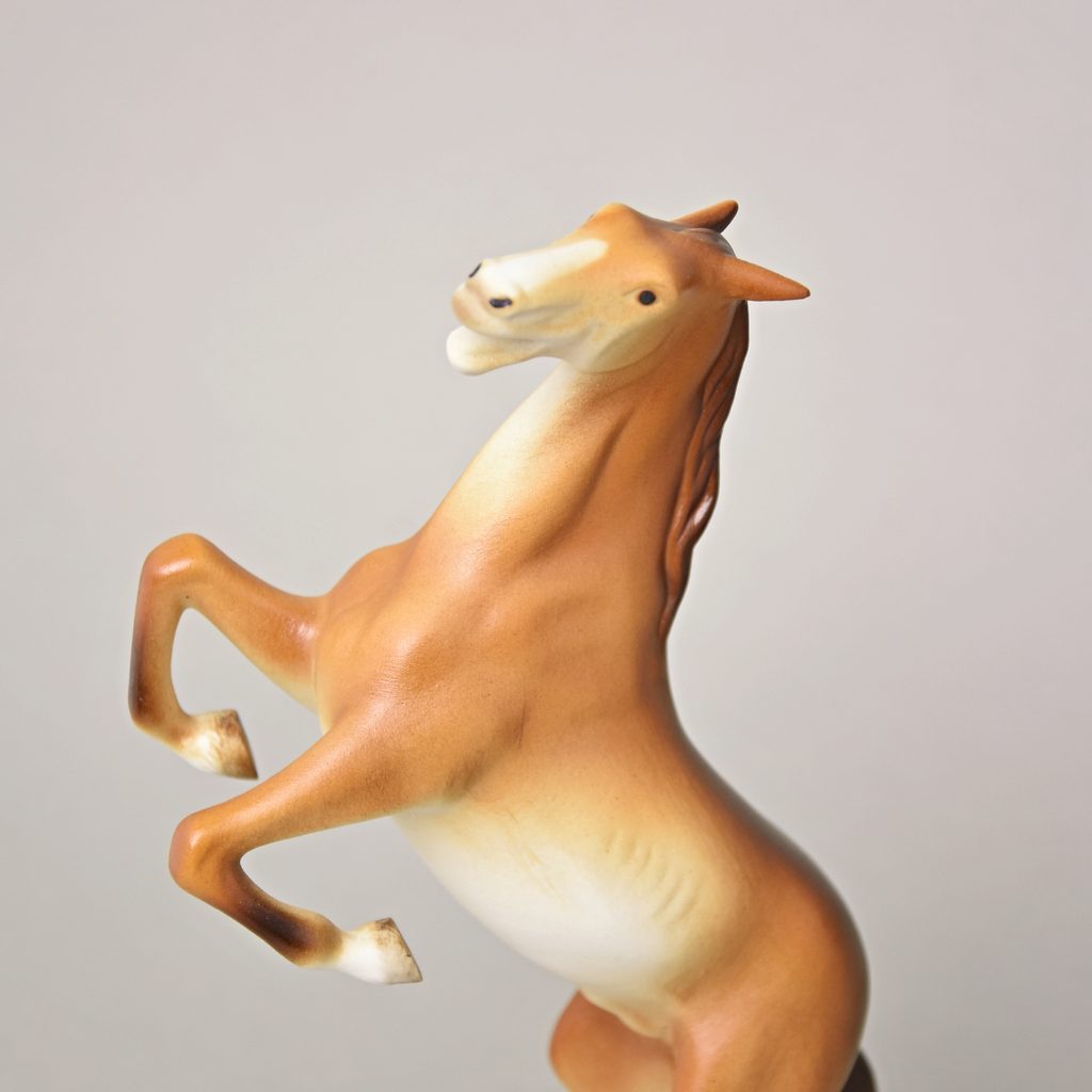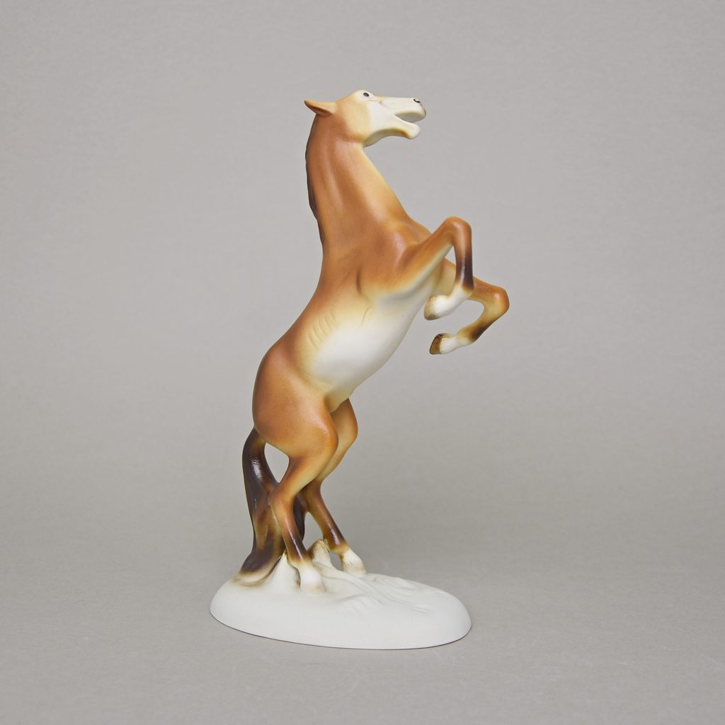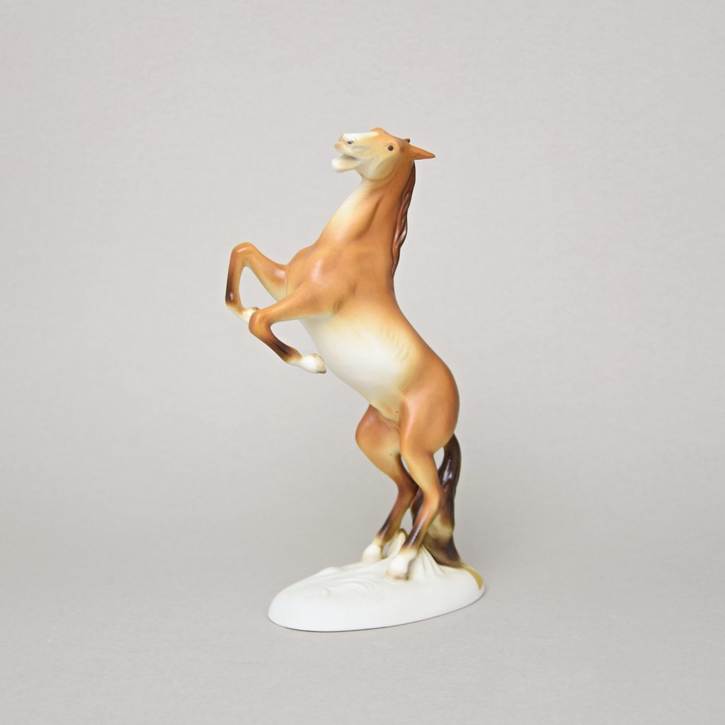 Porcelánová figurka s motivem hnědého vzpínajícího se koně z tradiční české dílny Duchcov. Vhodné jako dárek pro všechny milovníky koní.