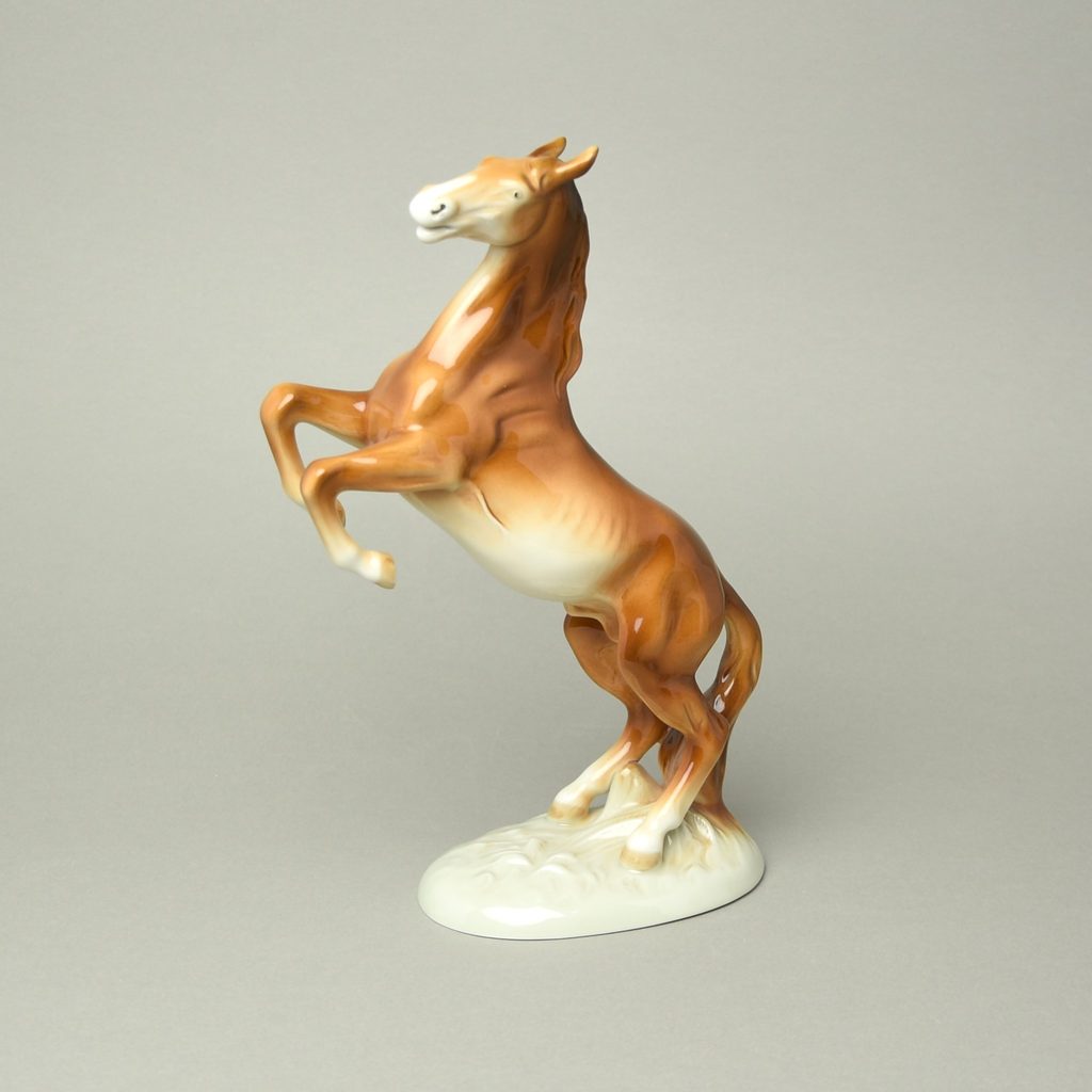 Porcelánová figurka s motivem hnědého vzpínajícího se koně z tradiční české dílny Duchcov. Vhodné jako dárek pro všechny milovníky koní.