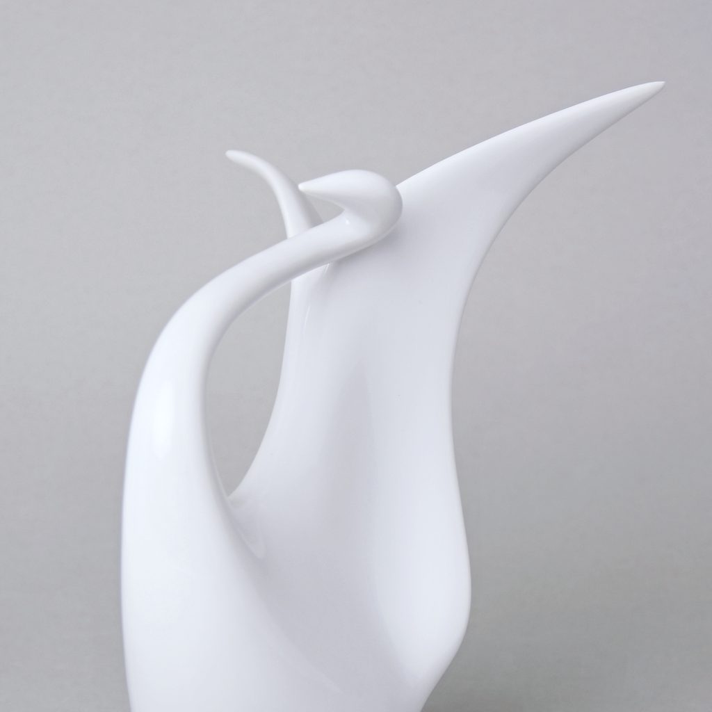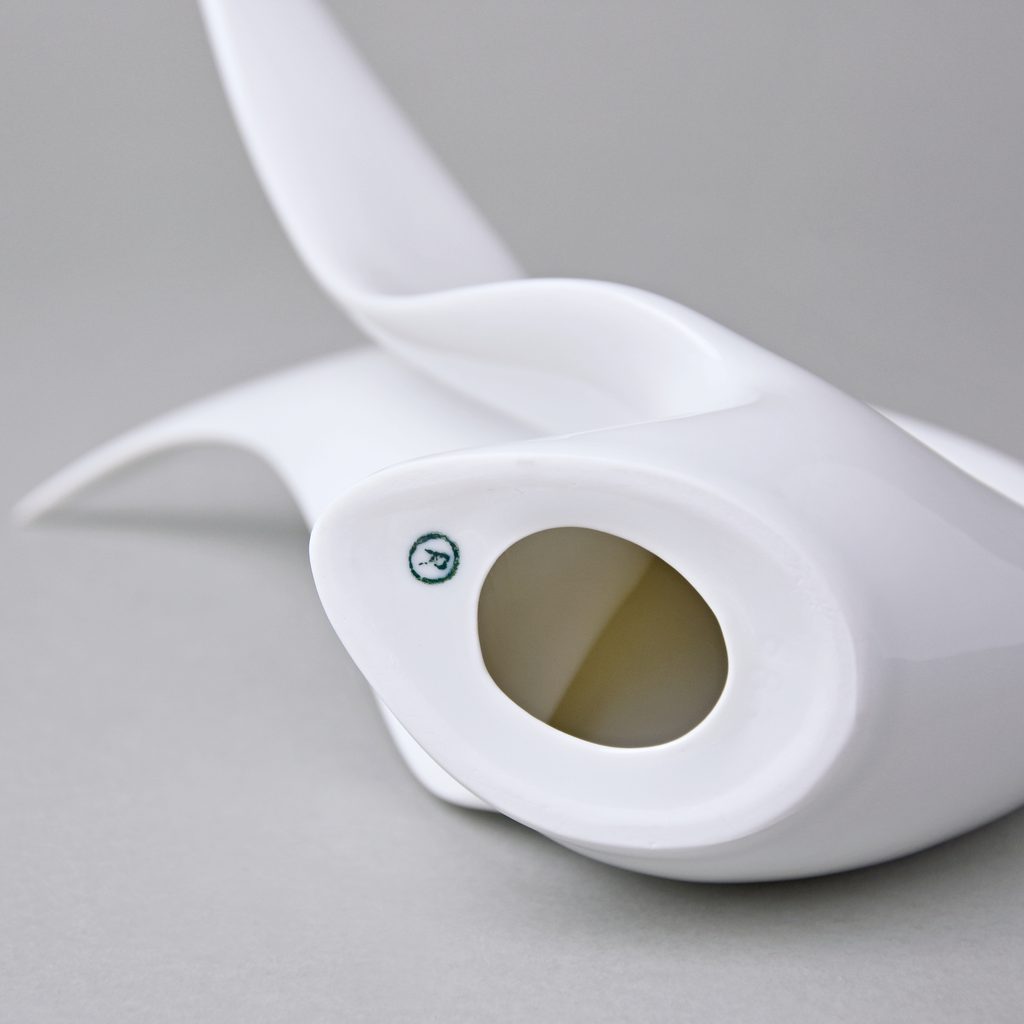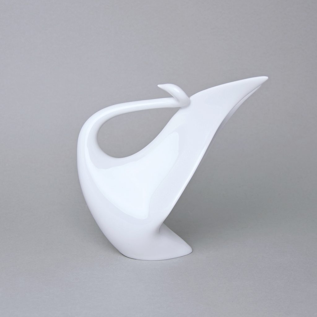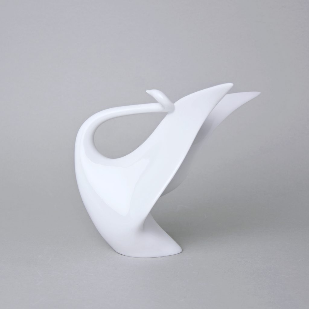 Porcelánová figurka labutě s roztaženými křídly. Vyrobeno v tradiční české manufaktuře Duchcov (Royal Dux Bohemia), dnes bohužel již zaniklé.