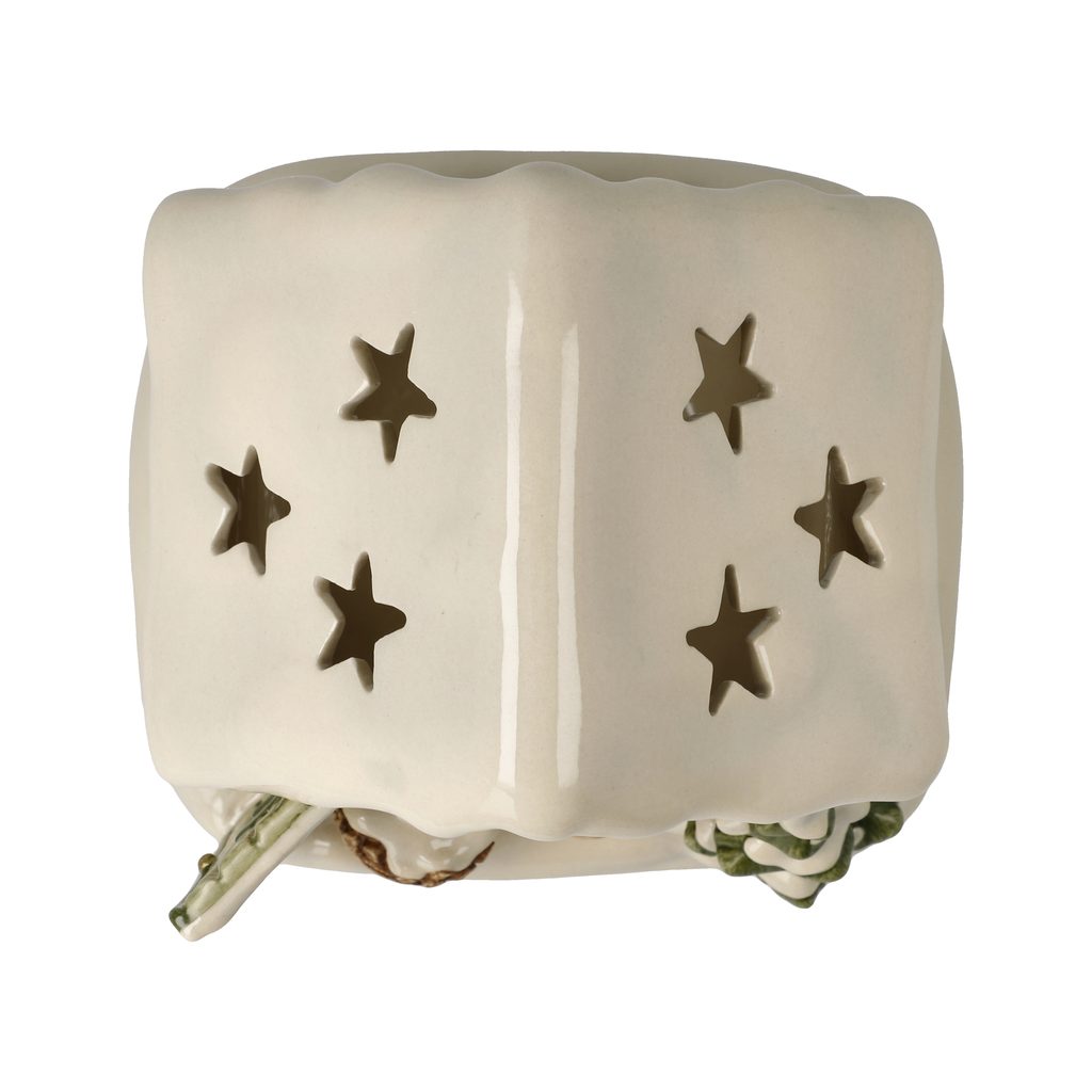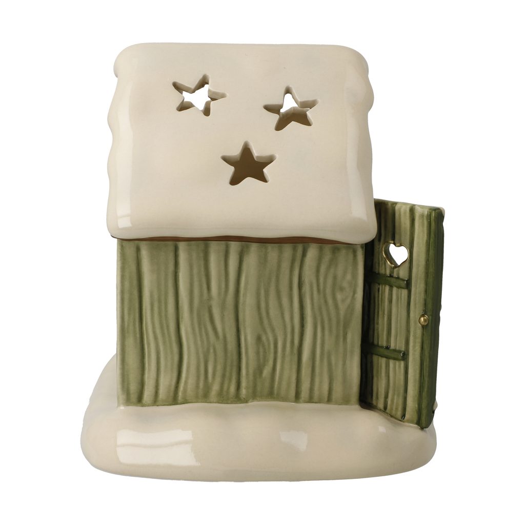 Lesní chatka v zimě z kameniny (obsahuje i 1x čajovou svíčku, která domeček v přítmí vánočního večera krásně prosvítí) z vánočního souboru Zimní les porcelánky Geobel