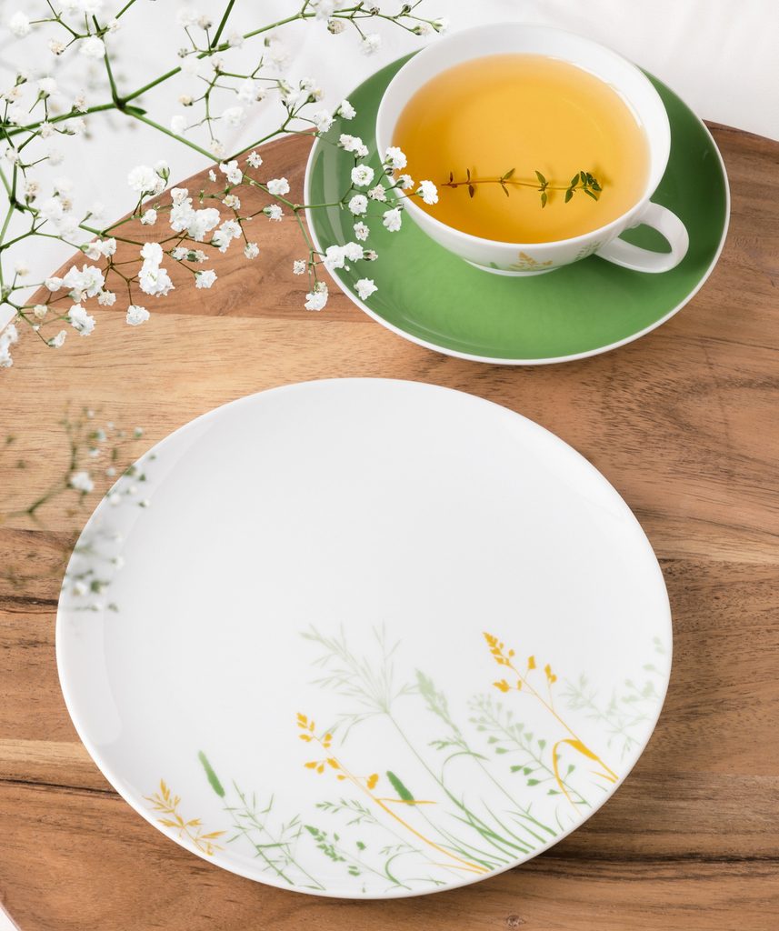 nádherný jednoduchý travní dekor na kvalitním německém moderním porcelánu Liberty