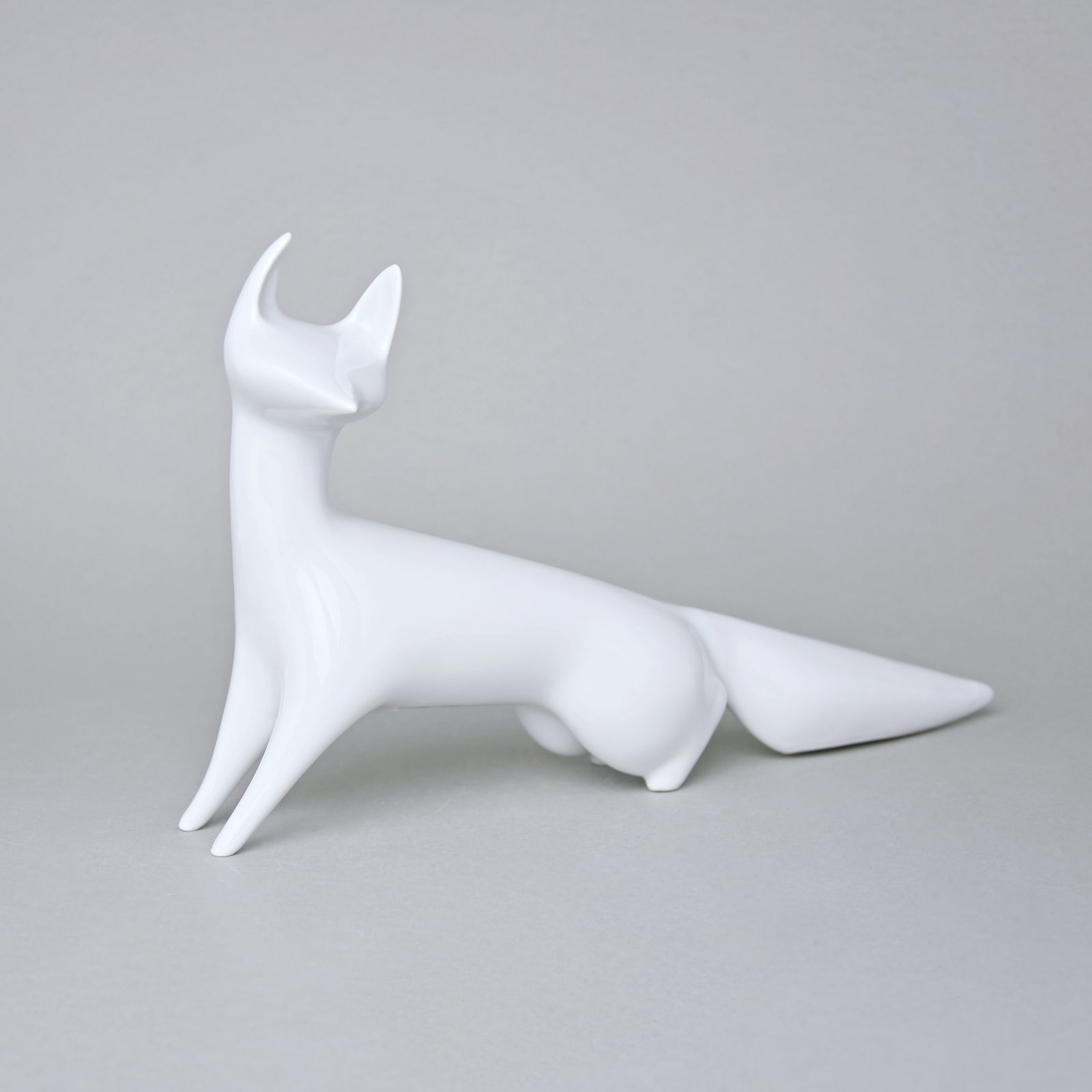 Porcelánová figurka lišáka. Nadčasový moderní design v čistě bílé barvě. Vyrobeno v tradiční české manufaktuře Duchcov (Royal Dux Bohemia), dnes bohužel již zaniklé.