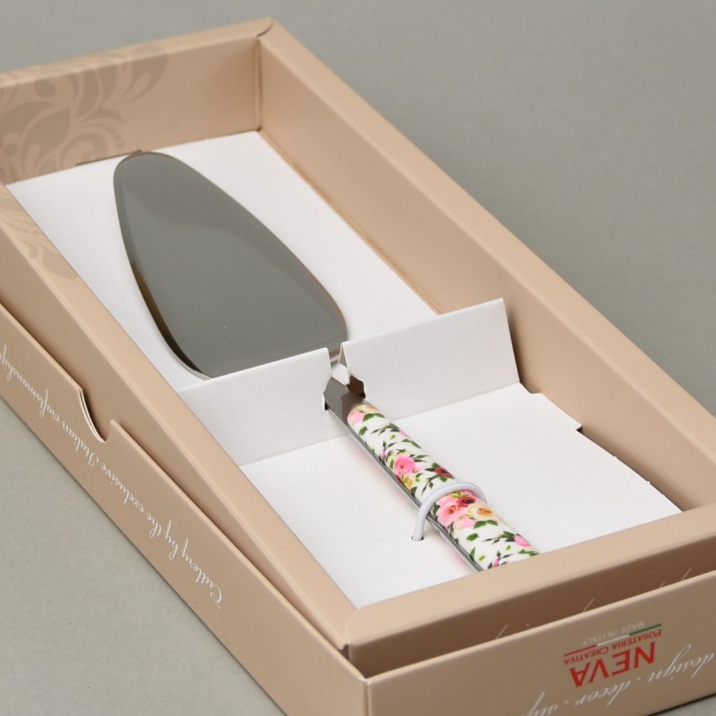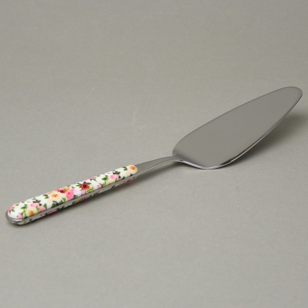 lopatka na dort v dárkové krabičce, řada BISTROT ROSES, leštěno do vysokého lesku, nerezová ocel 18/10, plastová rukojeť, sublimovaný nesmytelný dekor barevných růží