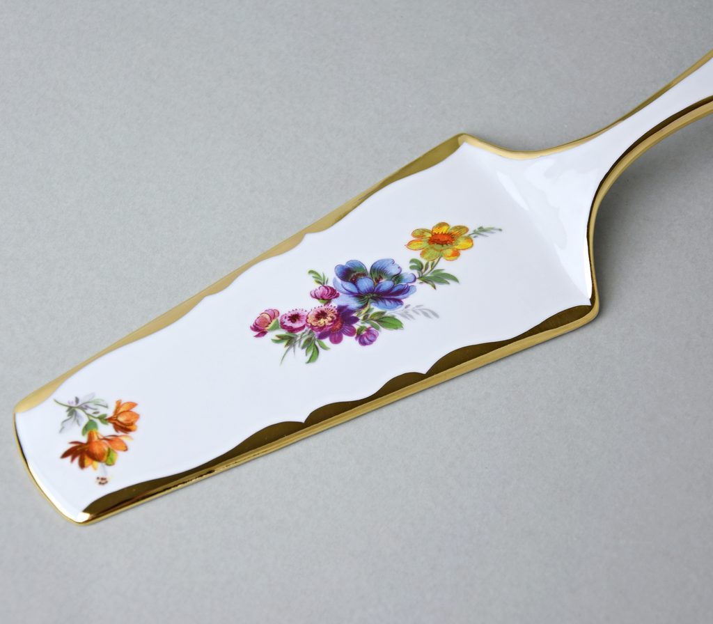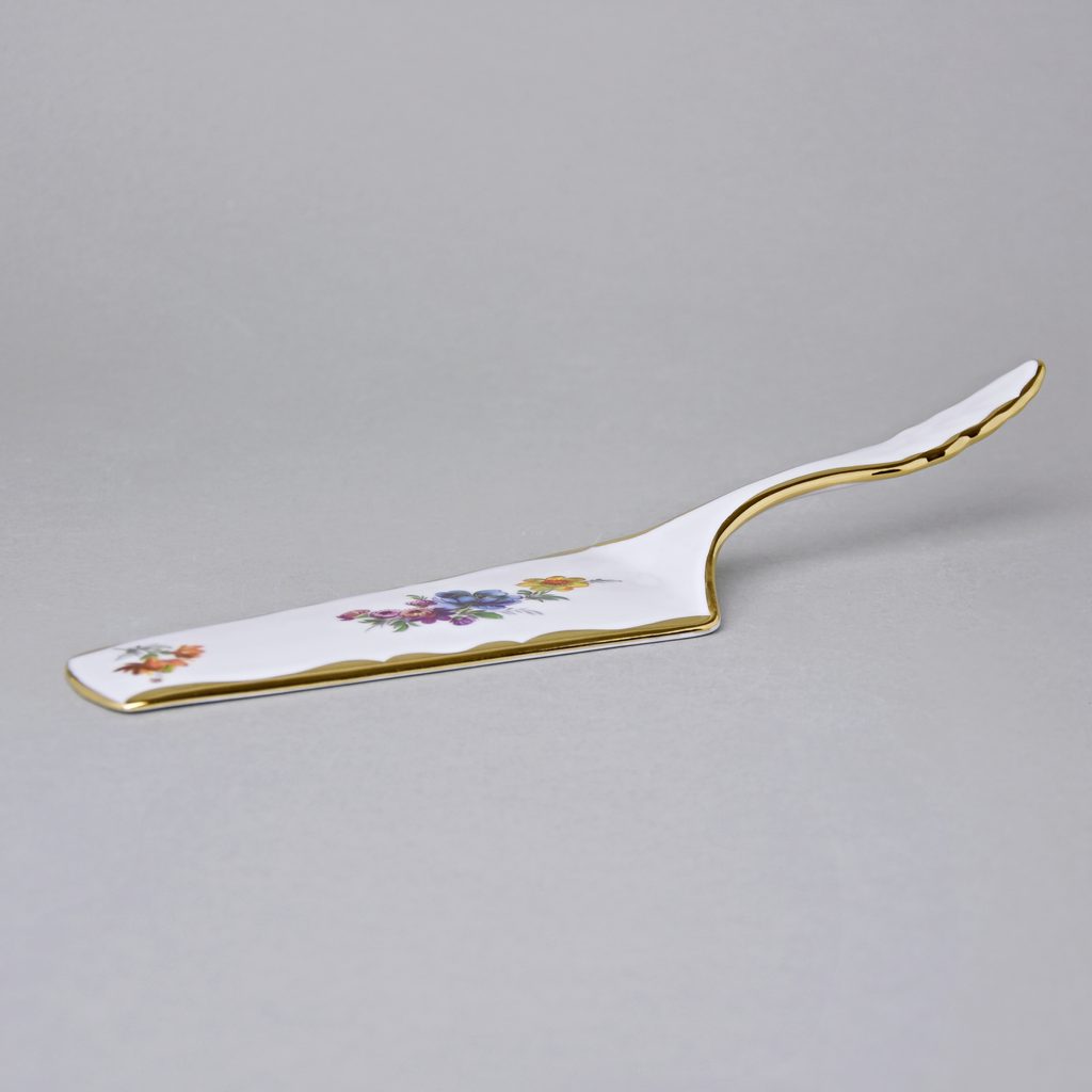 Zdobná krásná lopatka na dort z kolekce Aristokrat - květinový dekor se zlatem. Malá česká porcelánka Queens Crown.
