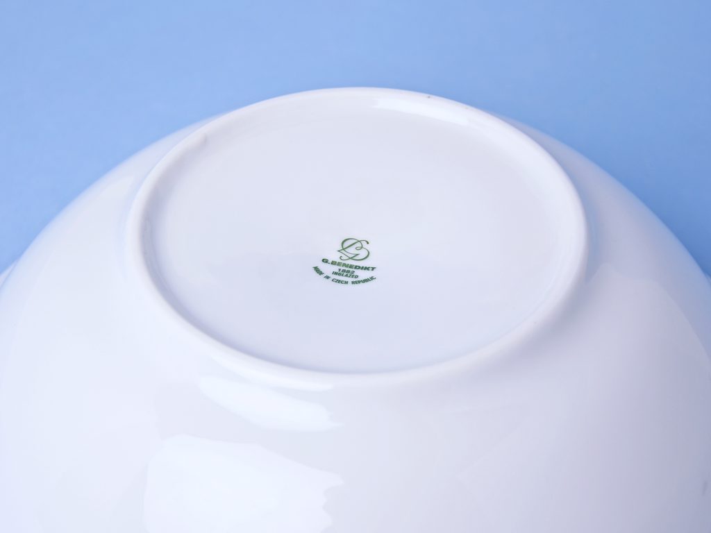 Reliéf podobný porcelánu Ofelie, tedy možno kombinovat (z estetického hlediska). Solidní servírovací mísa na pořádnou porci salátu, brambor, kompotu, apod., v. 8 cm