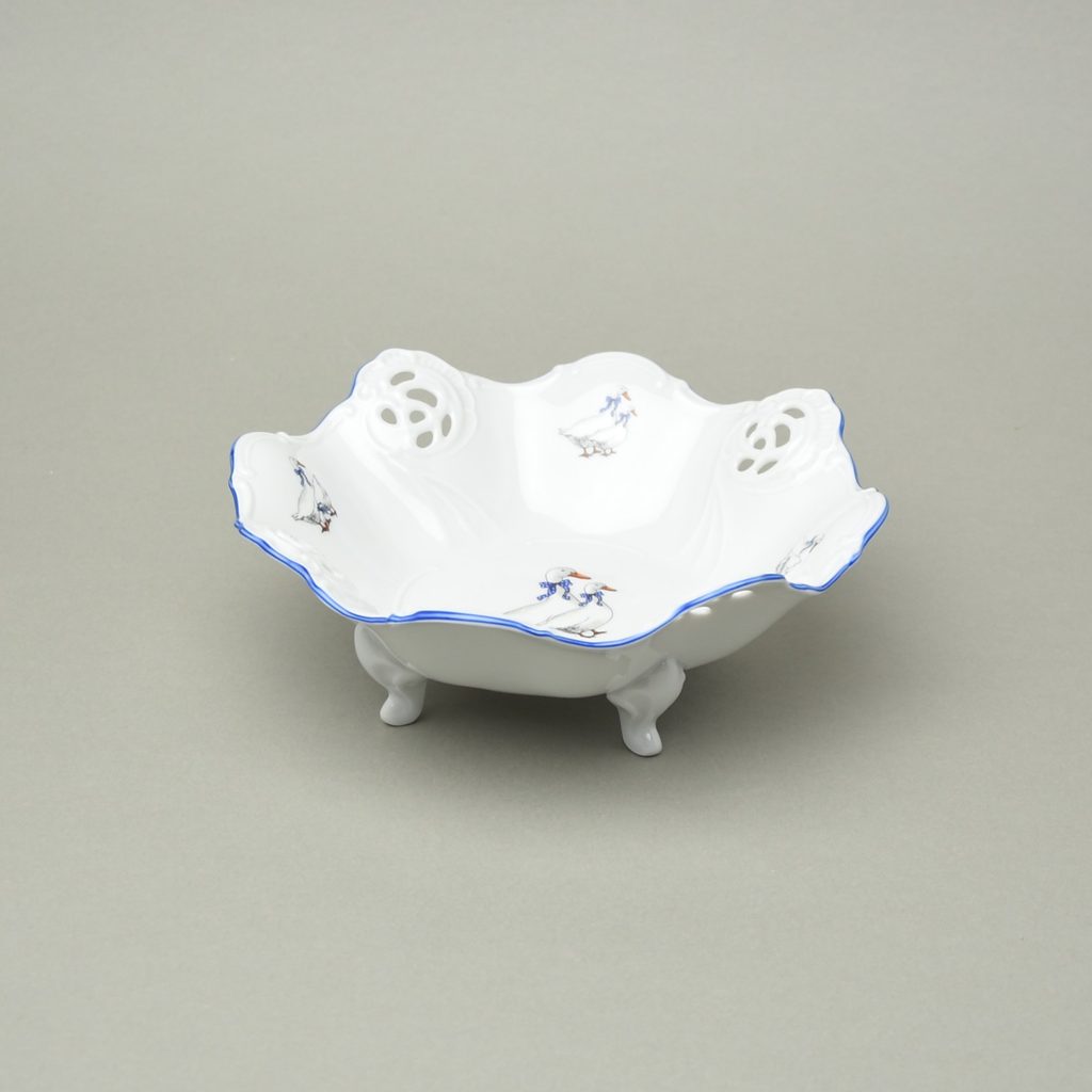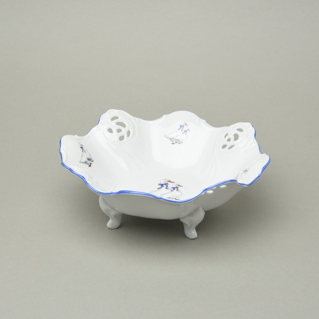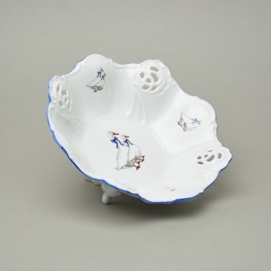440 g, rozkošná malá miska s průřezy na čtyřech nožkách, v dekoru husy, druhá jakost (pro laika k nerozeznání od první)