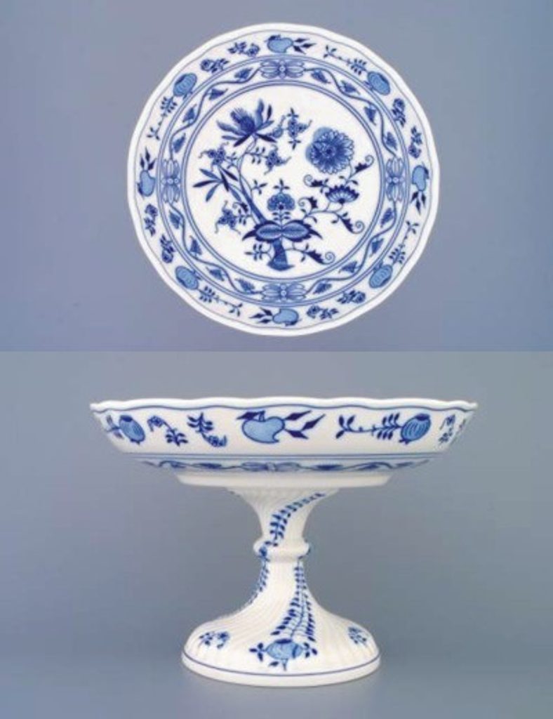 Mísa kompotová oboustranná na ozdobné noze vysoké 26 cm, Cibulák, originální z Dubí (2.j.)