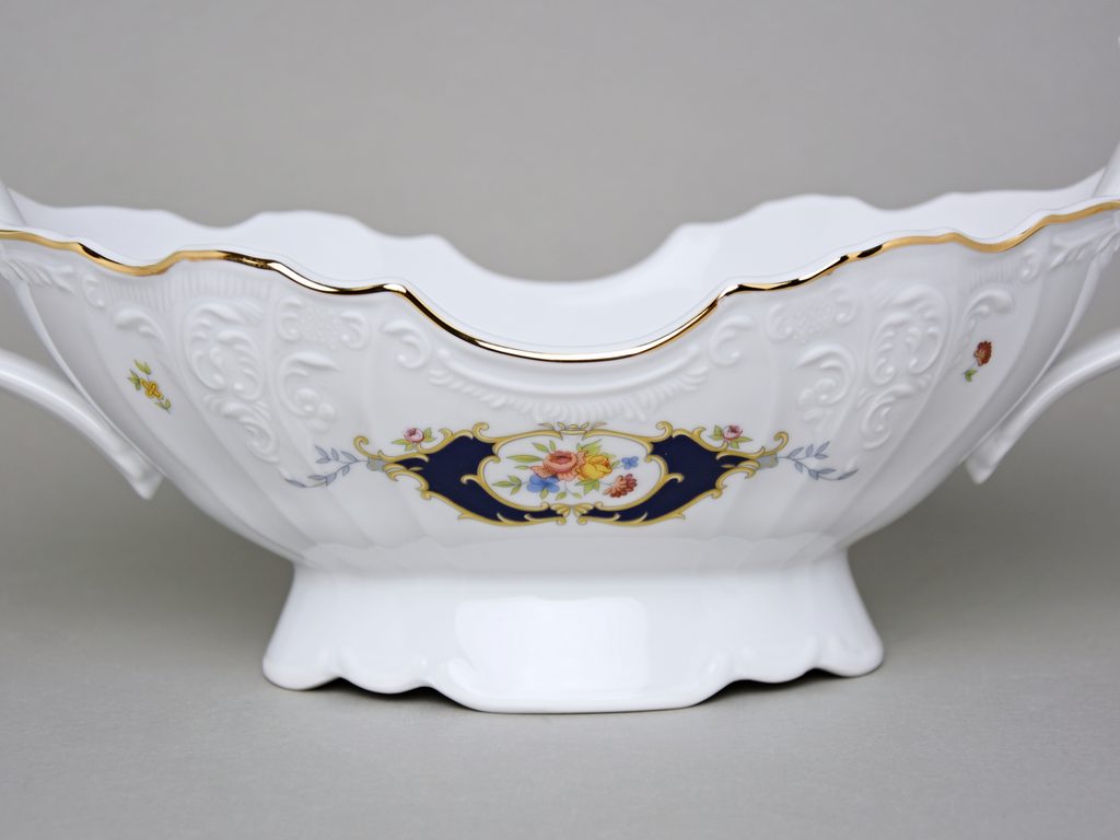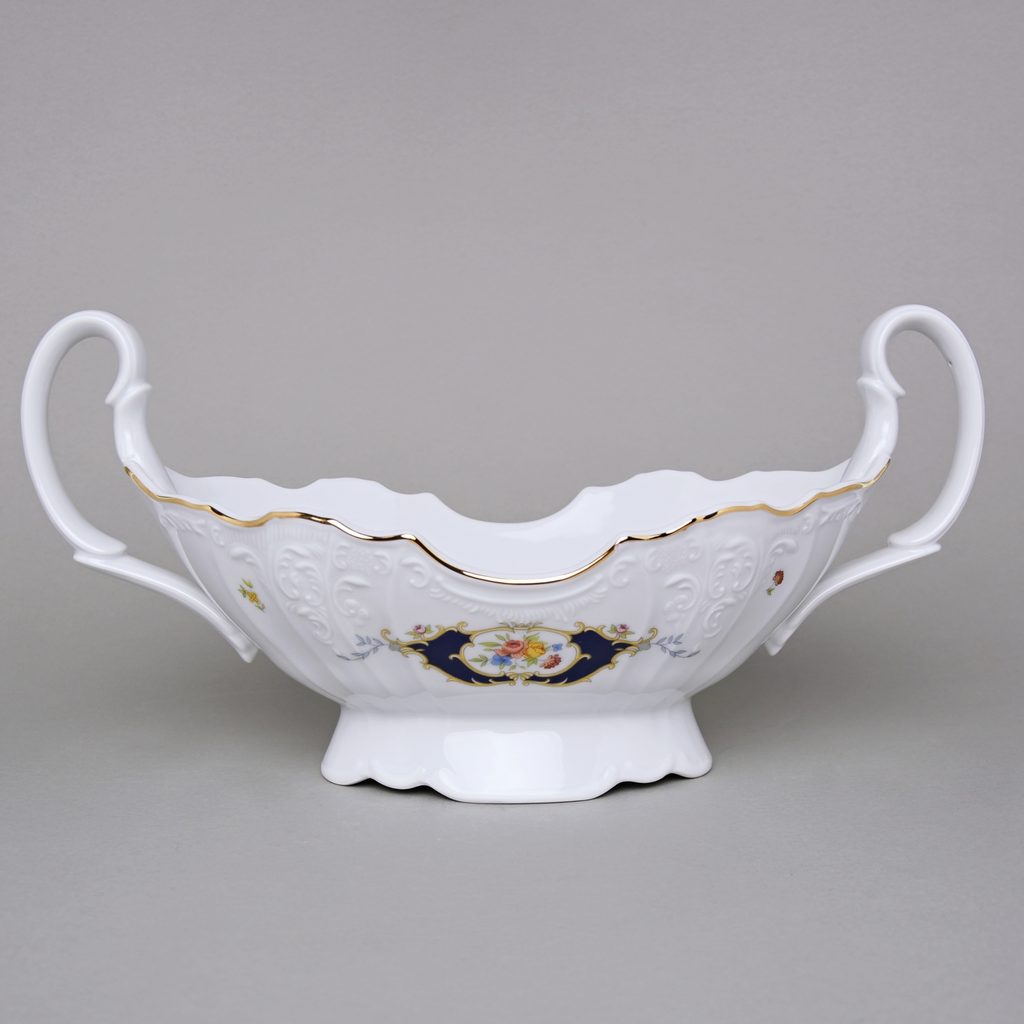 Ozdobná velká mísa na ovoce s uchy 34 cm. Z karlovarské porcelánky Thun 1794, BERNADOTTE, dekor Erbíky.