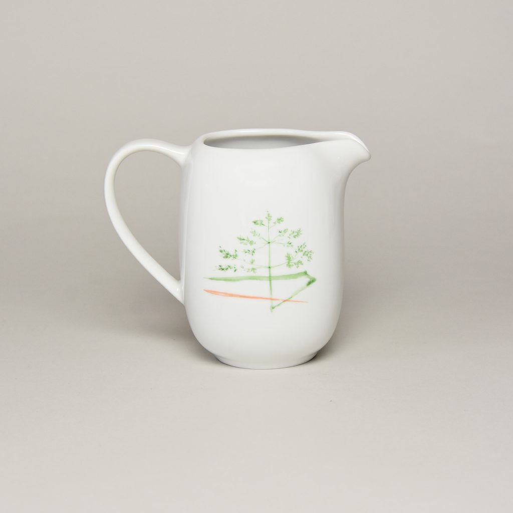 Elegantní designová mlékovka s jemným dekorem kvetoucí traviny.