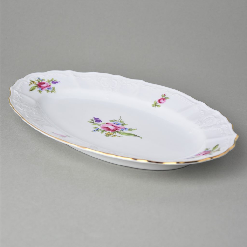 Ovál 26 cm (přílohová mísa plochá), Thun 1794, karlovarský porcelán, BERNADOTTE míšeňská růže