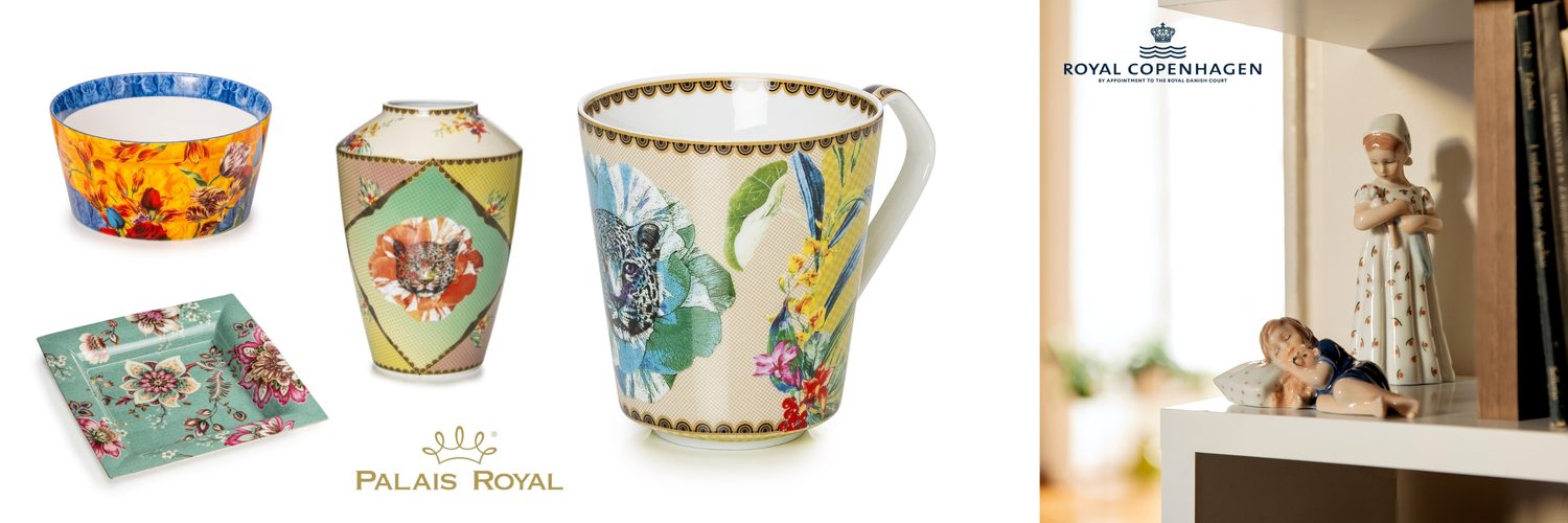Italské porcelánové a keramické šálky, podnosy, mísy a další z pestrobarevných kolekcí domácích potřeb Lamart, značky Palais Royal. Palais Royal je značka specializovaná na produkci porcelánu vysoké kvality ve spojení s italským designem.