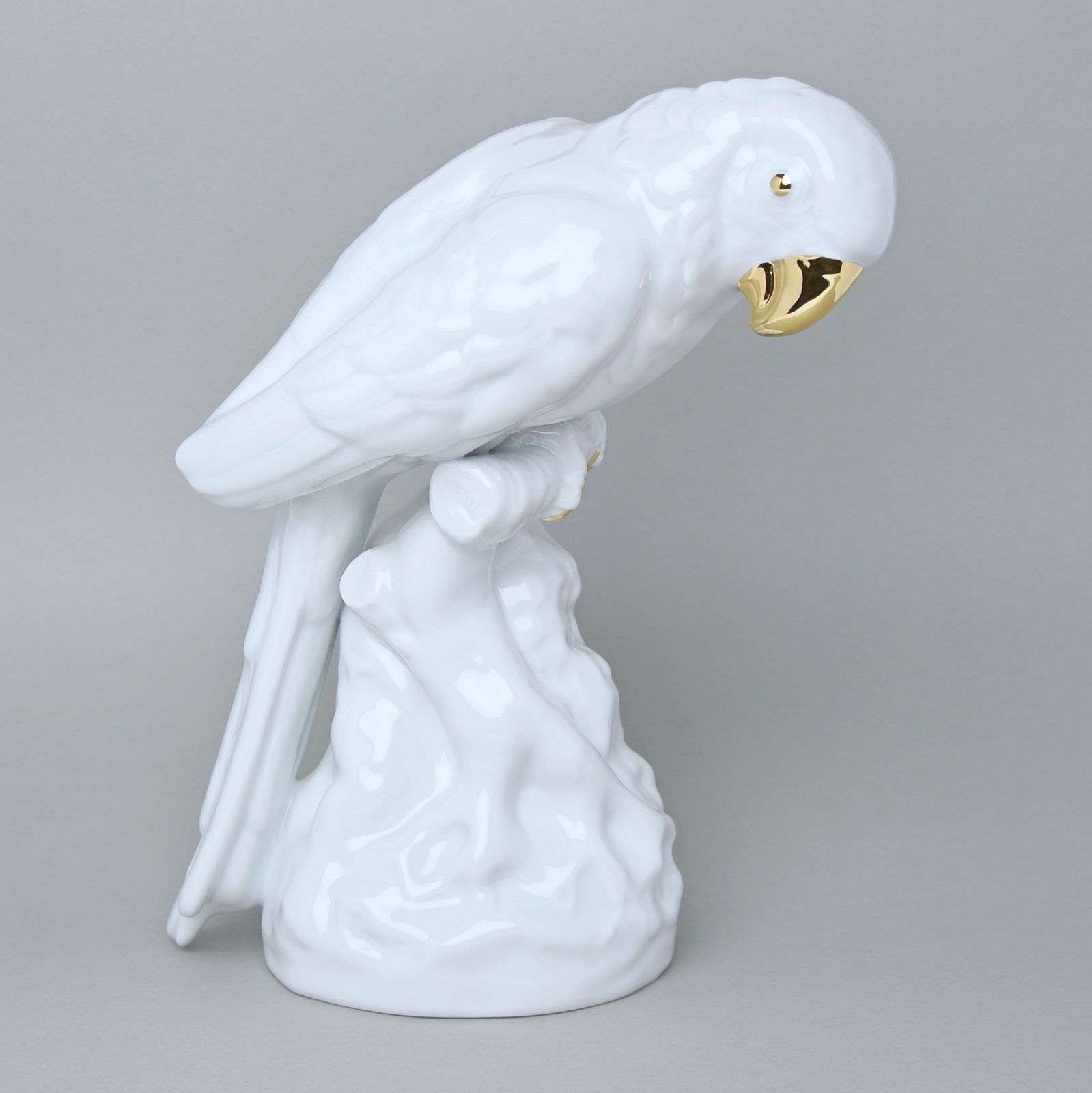 Papoušek 16 x 24,5 x 30 cm, Bílá + zlato, Porcelánové figurky Duchcov