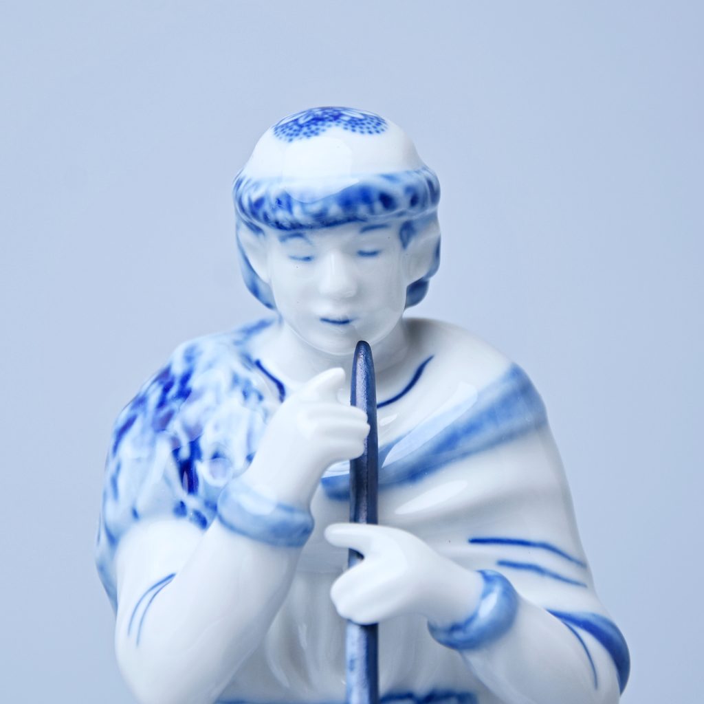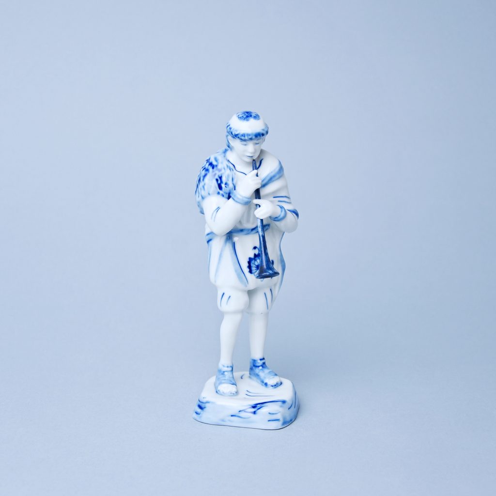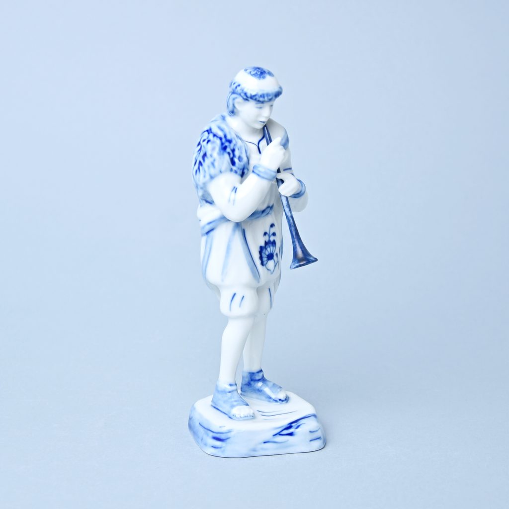 Porcelánová figurka pasáčka s píšťalou v dekoru Originální cibulový vzor z Dubí, Český porcelán a.s. Figurka jako dekorace do vánočního betlému.