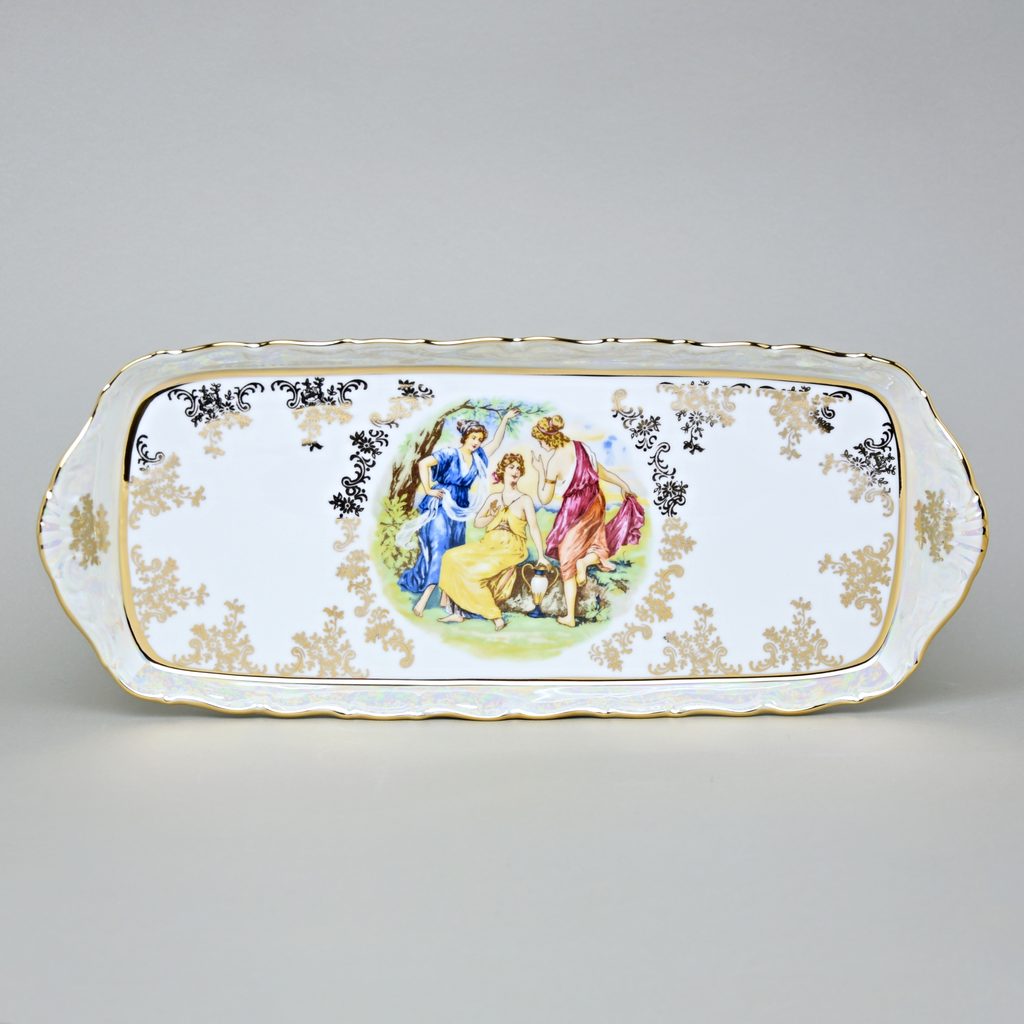 Podnos 4 hr. 36 cm, Tři Grácie, zlatý listr, porcelán QueensCrown