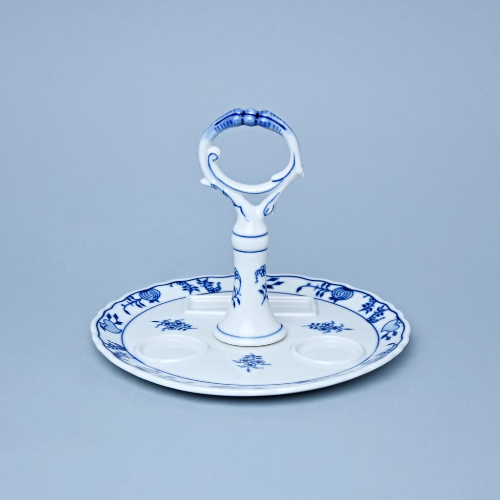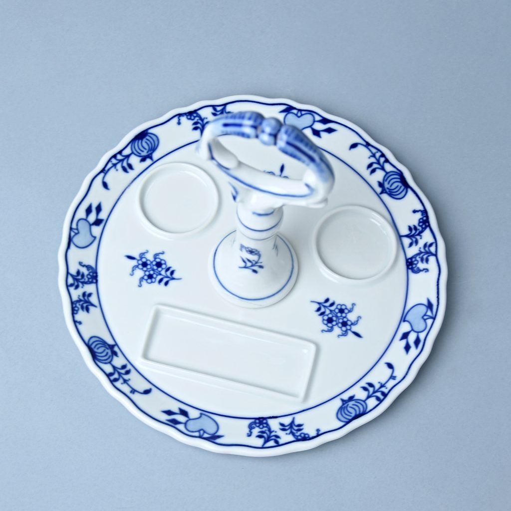 Podnos kulatý s porcelánovým klíčem 21 cm (na slánku, pepřenku, párátník), Cibulák, originální z Dubí