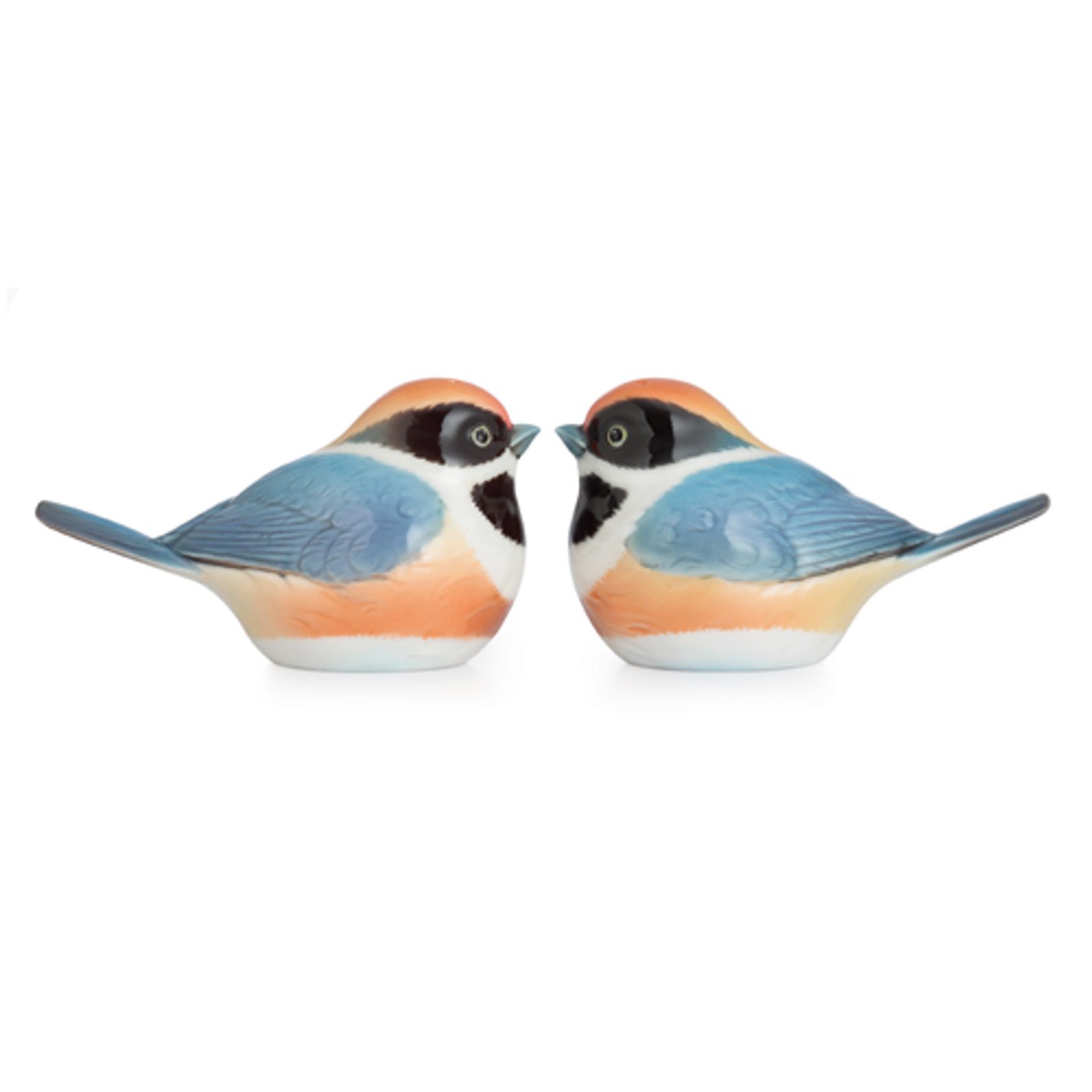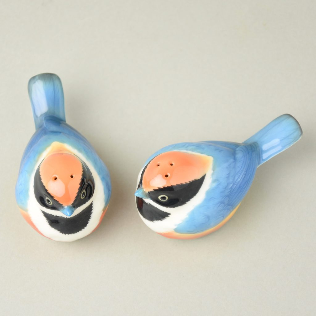 Nádherné dva kousky porcleánu. Stolovací doplněk, slánka a pepřenka s krásným malým zpěváčkem, Mlynaříkem rudohlavým, který obývá jihovýchodní Asi. Užasné malé umělecké dílo, ručně dekorované, které je zároveň vysoce funkčním výrobkem.