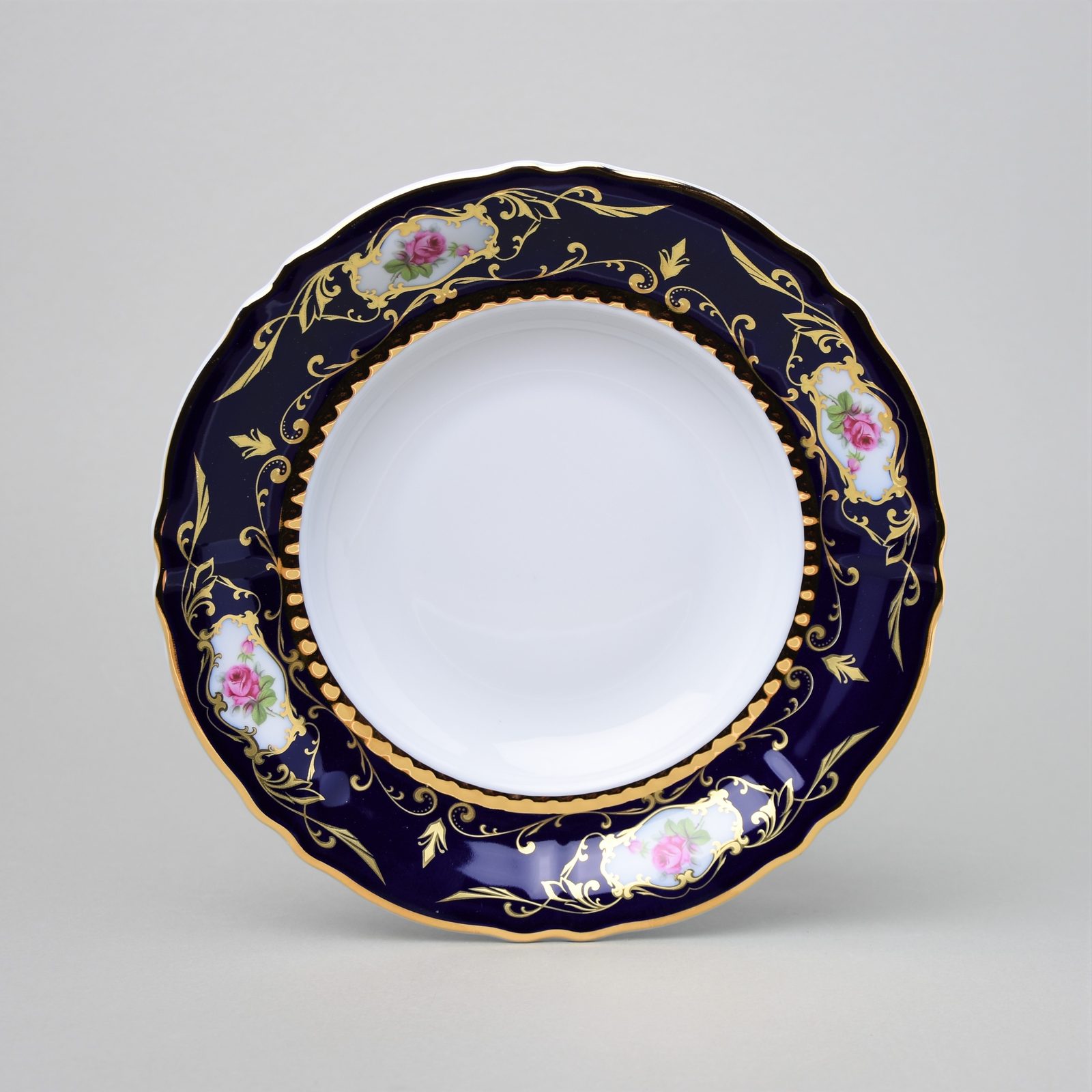 440: Talíř hluboký 23 cm, Sonáta, kobalt + růže, Leander Loučky