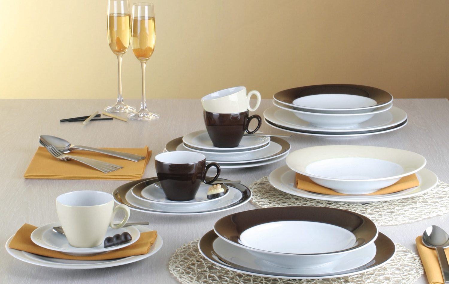 Porcelán Seltmann. Moderní tvar TRIO a dekory 23600 Vanilla a 23602 Dark Chocolate, které se navzájem výborně doplňují.
