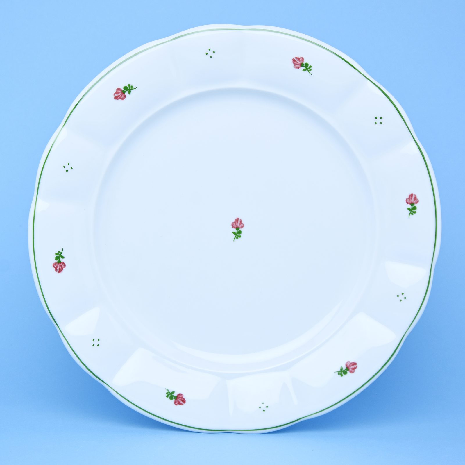 Talíř mělký 26 cm, Benedikt červené kvítí + zelená, G. Benedikt 1882