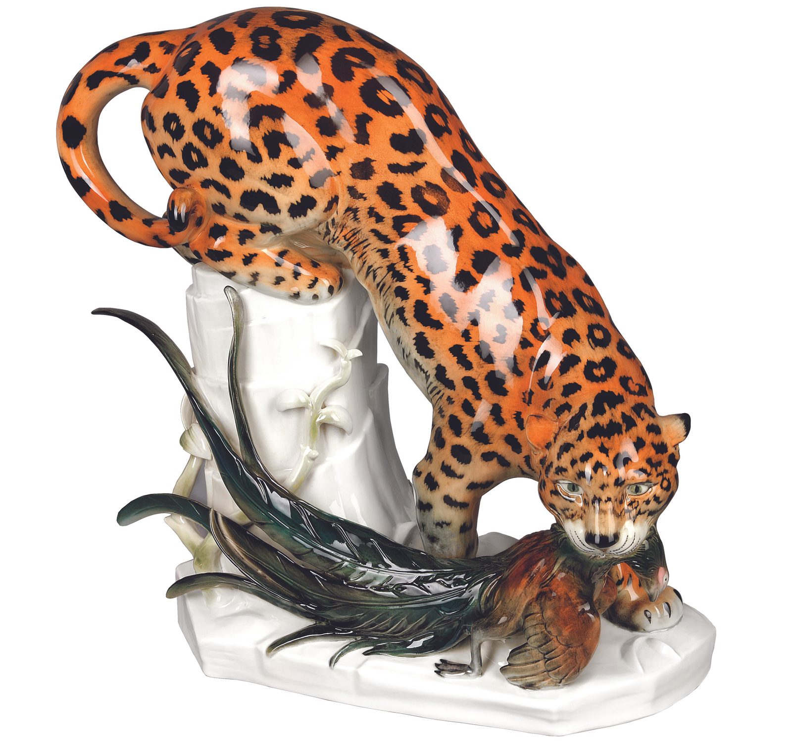 Panter s bažantem 38 x 20 x 38 cm, Porcelánové figurky Aelteste Volkstedter