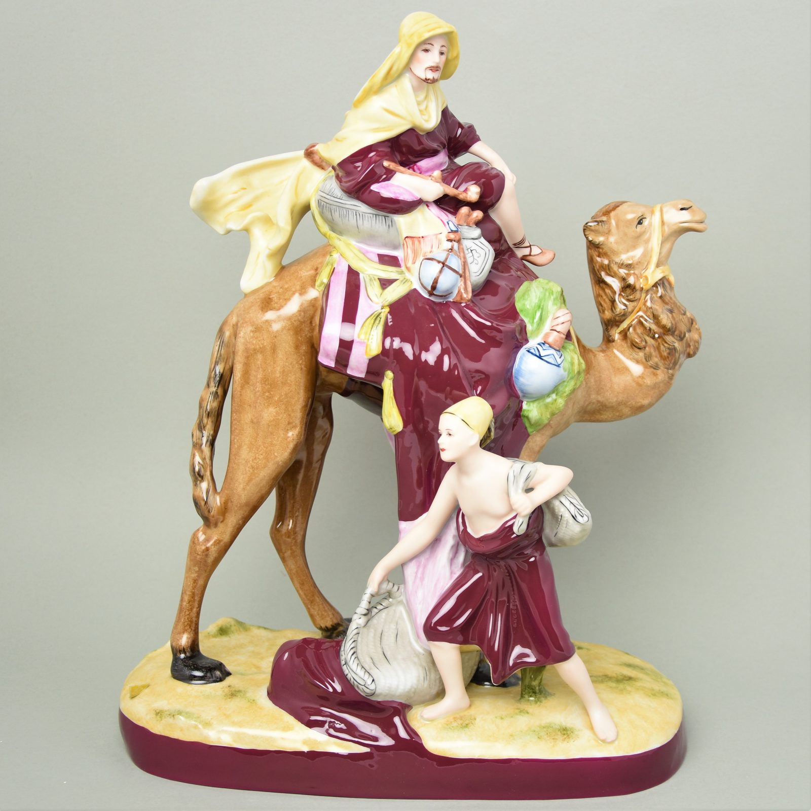 jedna z největších figurek z Duchcova, tradiční historický výjev "Arab na velbloudu" v dekoru SAXE