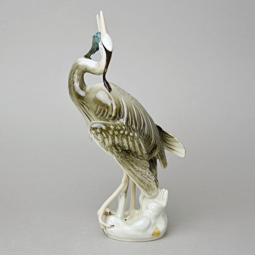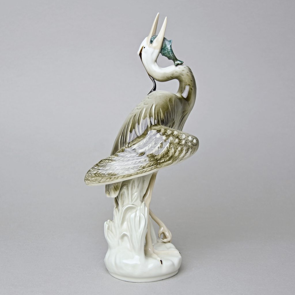Volavka s rybou 14,5 x 10,5 x 28,5 cm, Luxor, Porcelánové figurky Duchcov
