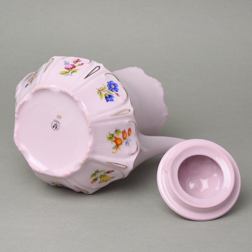 vysoká konvice - oficiálně kávová tvaru Lenka v nejoblíbenjším dekoru chodovské továrny na růžový porcelán, tedy "Sedmero kvítí", číslo 247