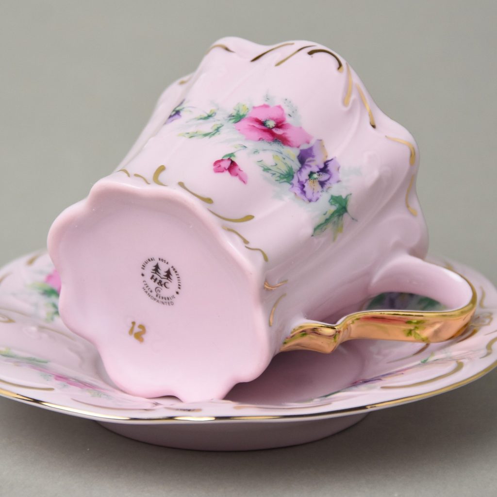 tvar Olga, květinový dekor 515 z chodovské továrny na růžový porcelán