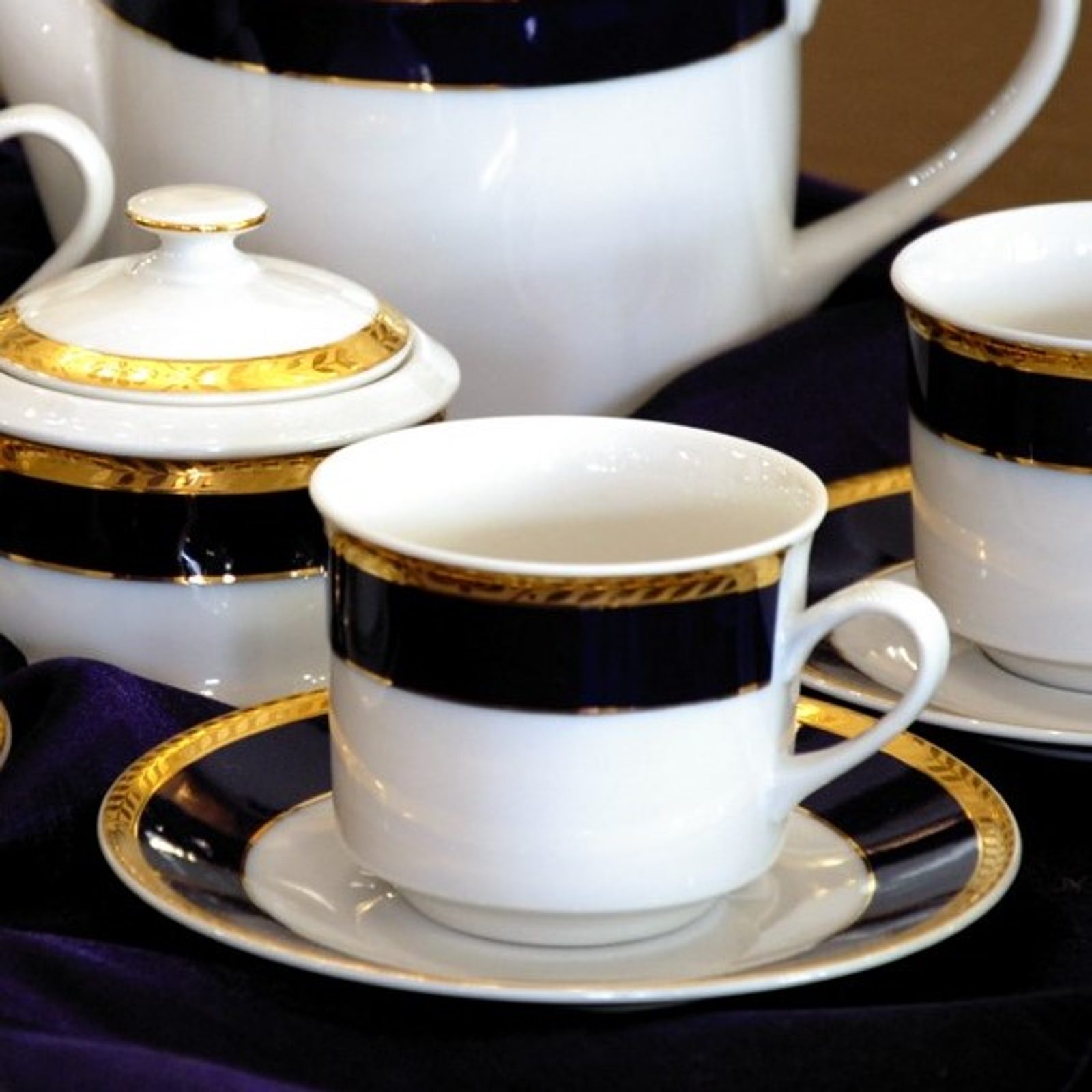 Sabina 767: Šálek 200 ml a podšálek 150 mm, kobalt + zlatý cop, Leander Loučky