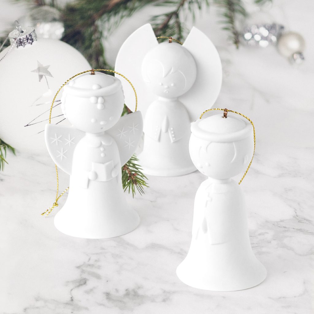 3 andílci - vánoční ozdoby zvonky z biskvitového porcelánu