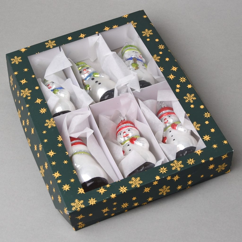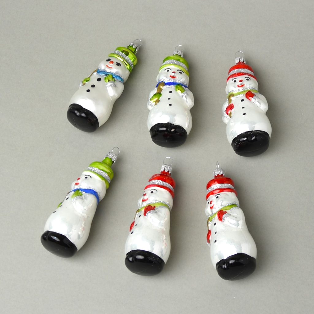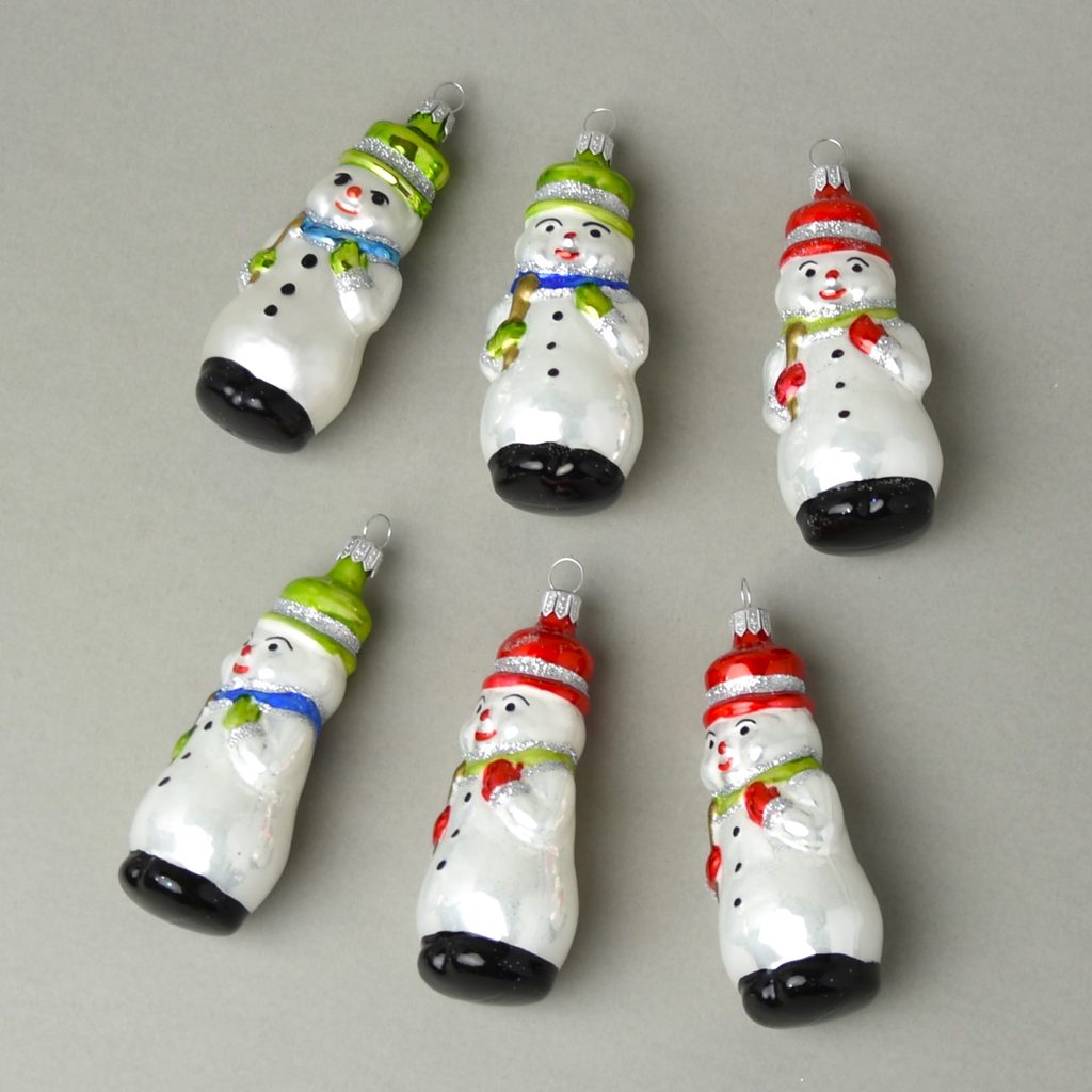 Sada 6 sněhuláků 10,5 cm - vánoční ozdoba skleněná