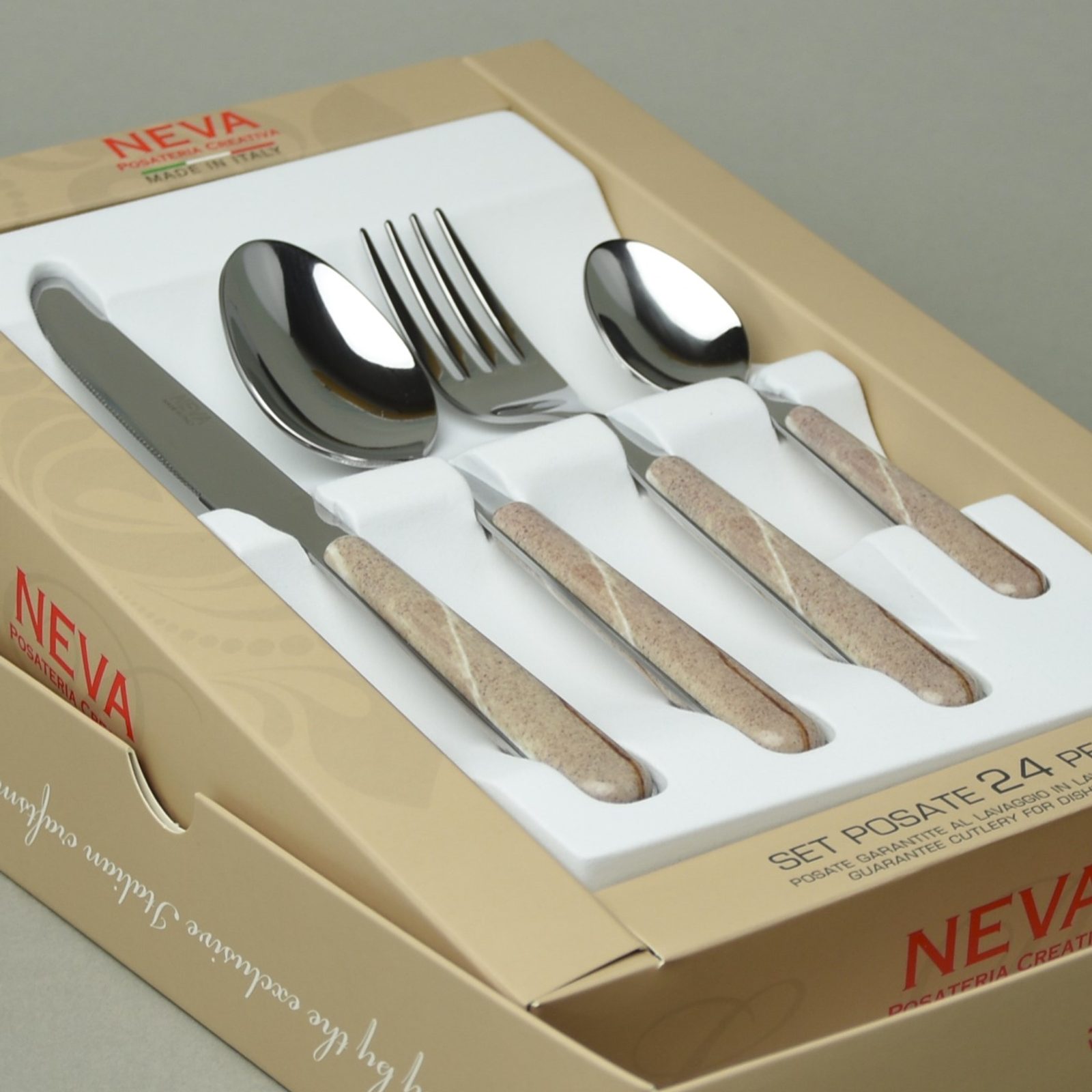 Každý kus příborů Neva Posateria Creativa je navržen a vyroben výhradně v Itálii, v Lumezzane (Brescia). Je skutečným projevem vynalézavosti a kvality typické pro Made in Italy. Neva Posateria Creativa vyváží výrobky do celého světa s cílem vyhovět každé kuchyni, kulinářské vášni a charakteru a pomoci vám vyjádřit váš styl.
