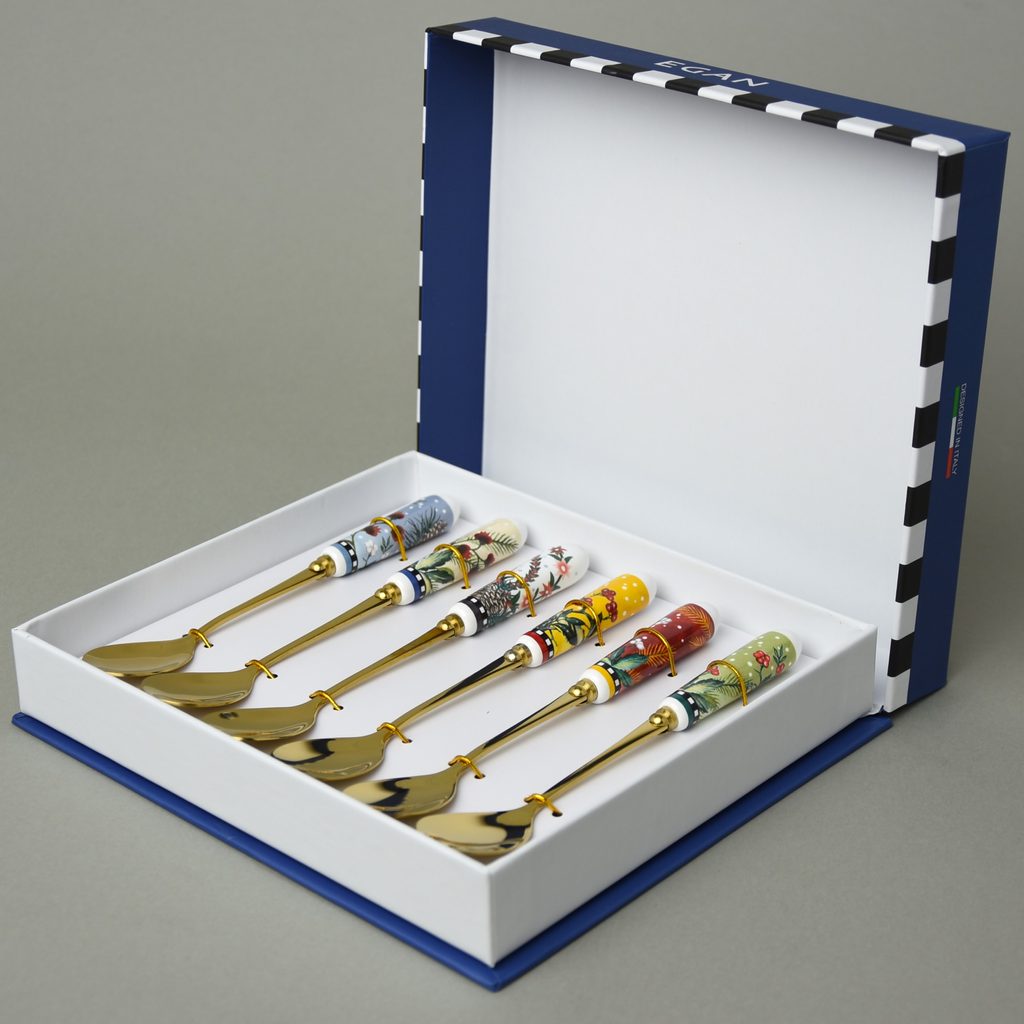 Sada vánočních kávových lžiček - 6 ks., keramika + nerezová ocel, EGAN