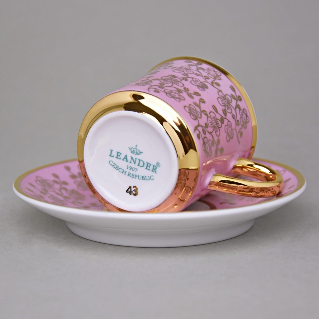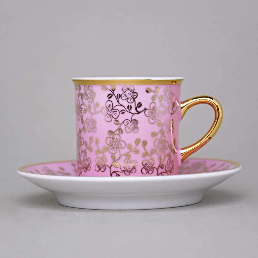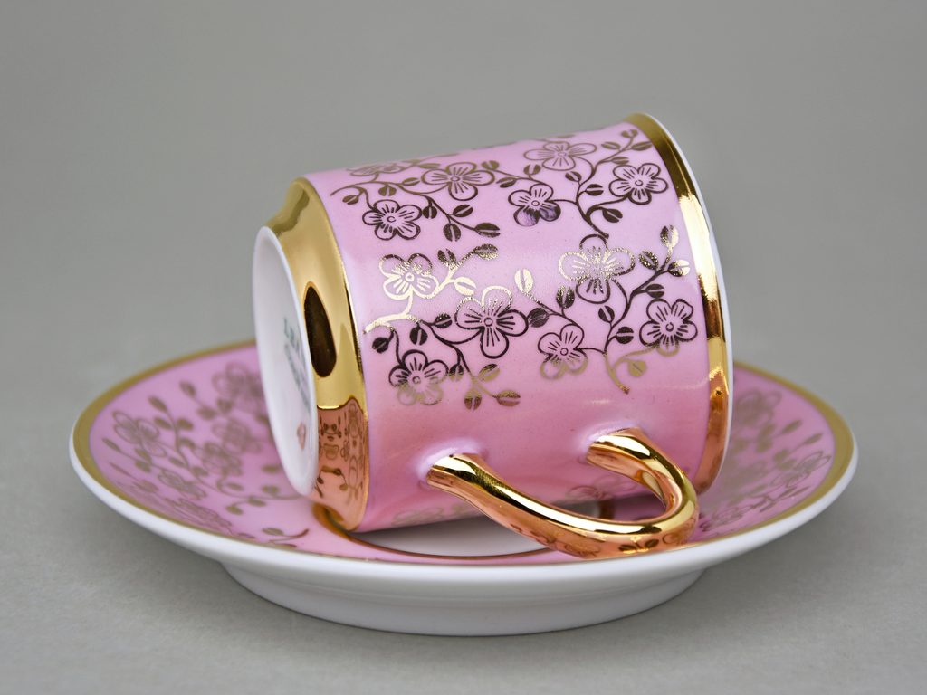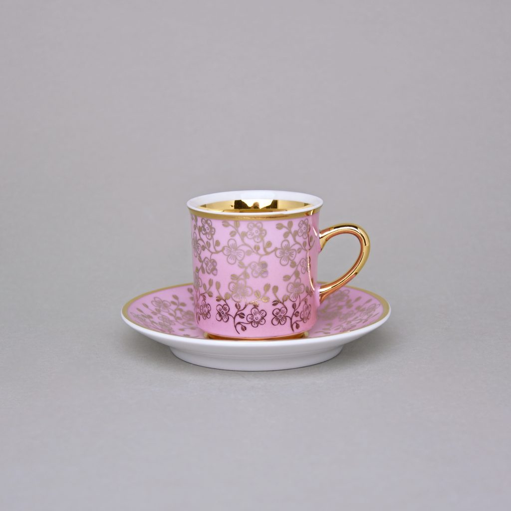 Šálek 100 ml mocca a podšálek 11,5 cm Sabina, vnitřní zlacení, růžový, Leander Loučky