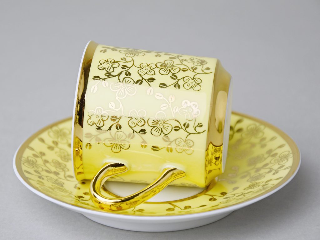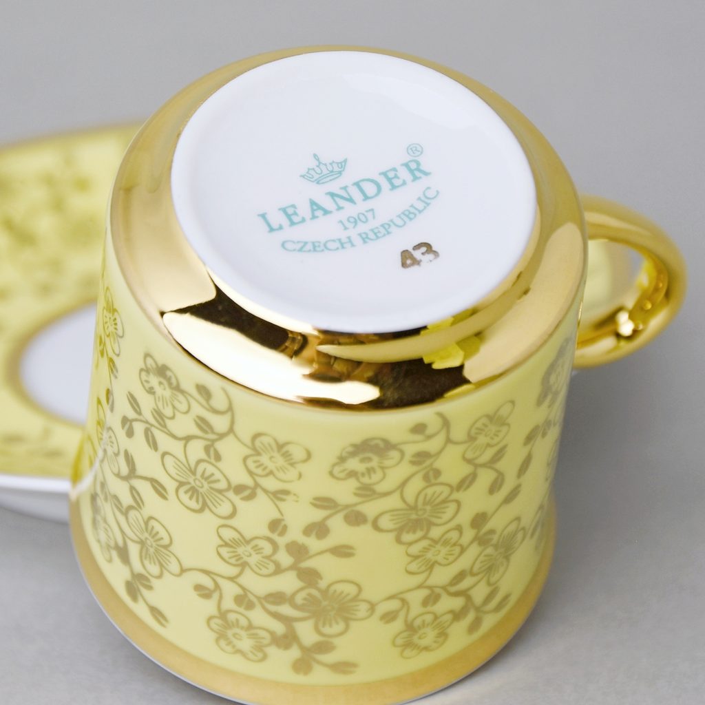 Šálek 100 ml mocca a podšálek 11,5 cm Sabina, vnitřní zlacení, žlutý, Leander Loučky