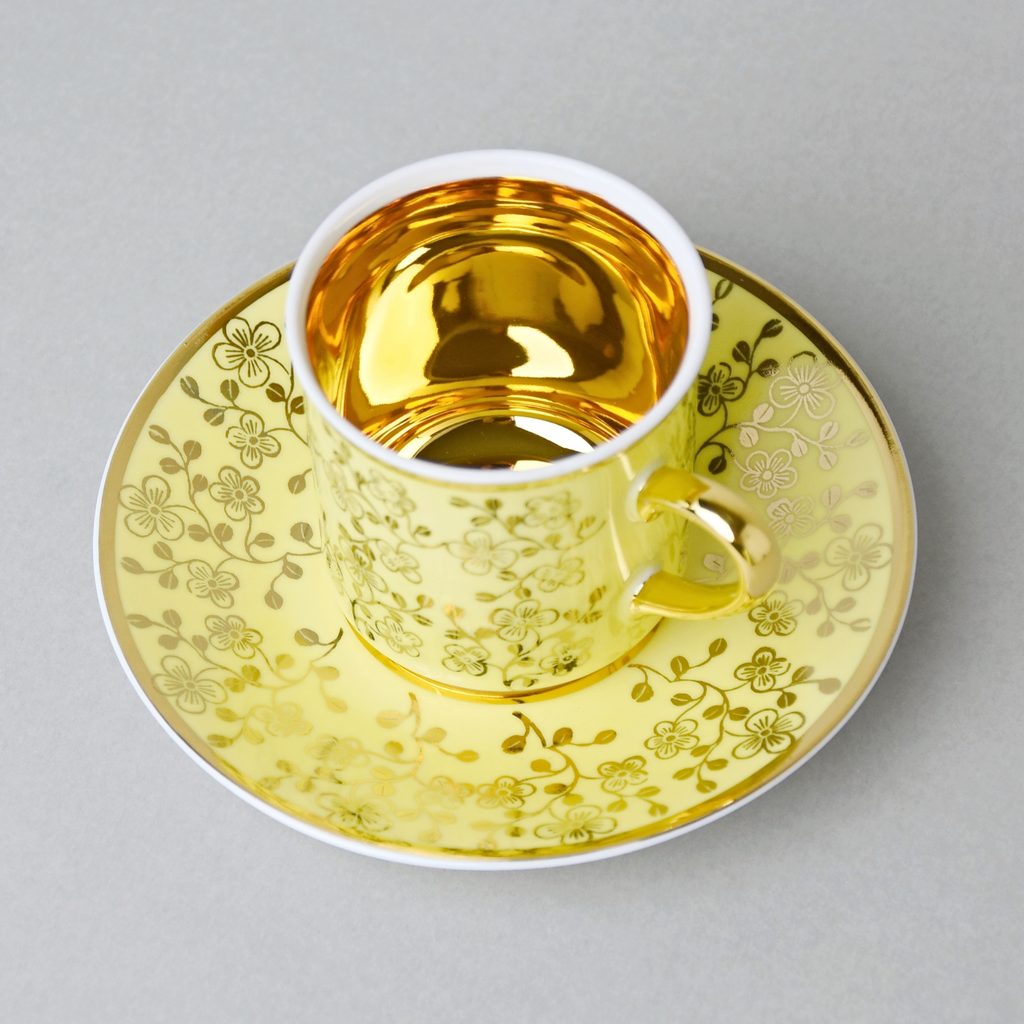 vnitřní zlacení, roztomilý malý lehounký šálek na espresso, žlutý, dekor A