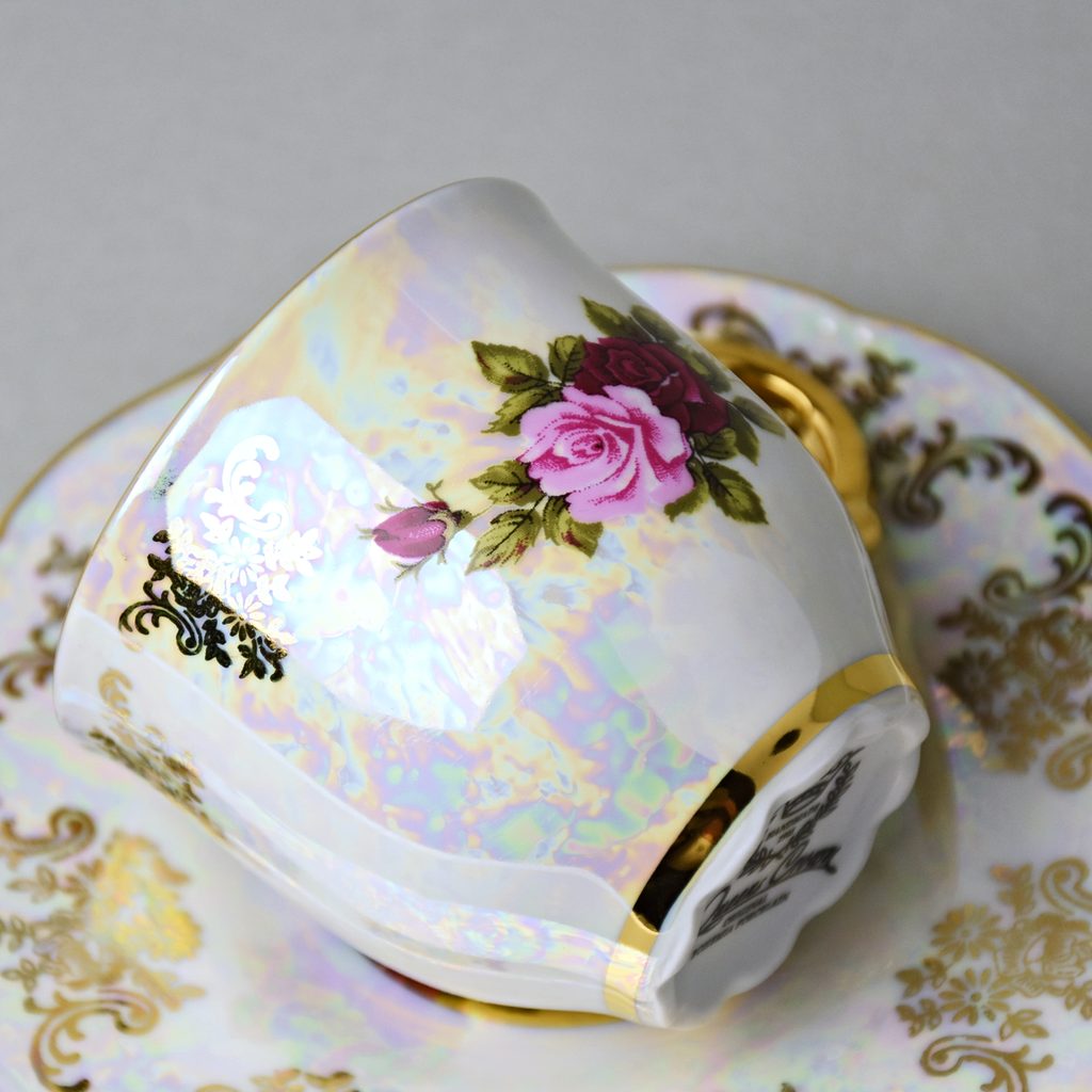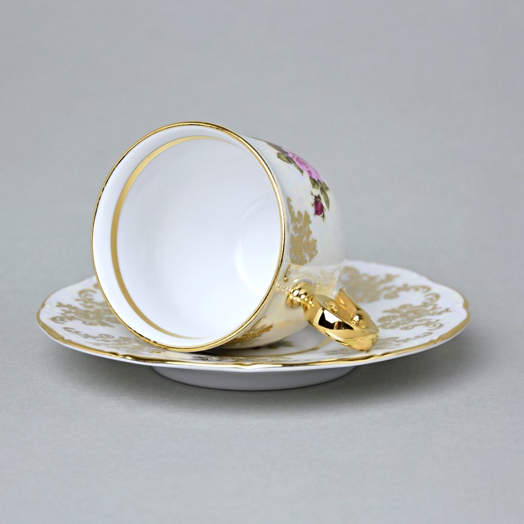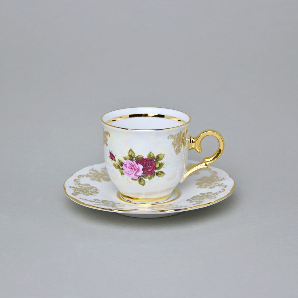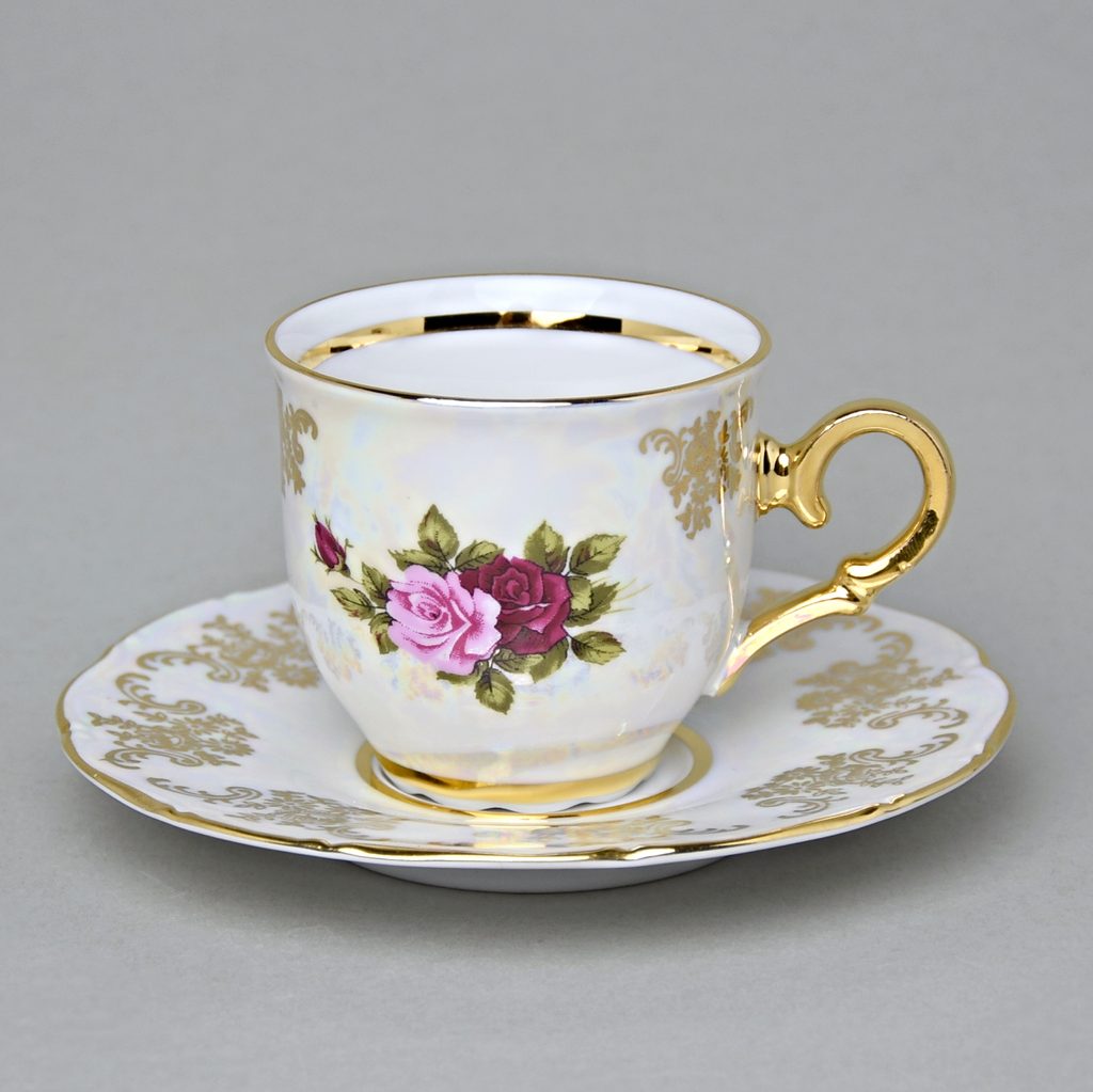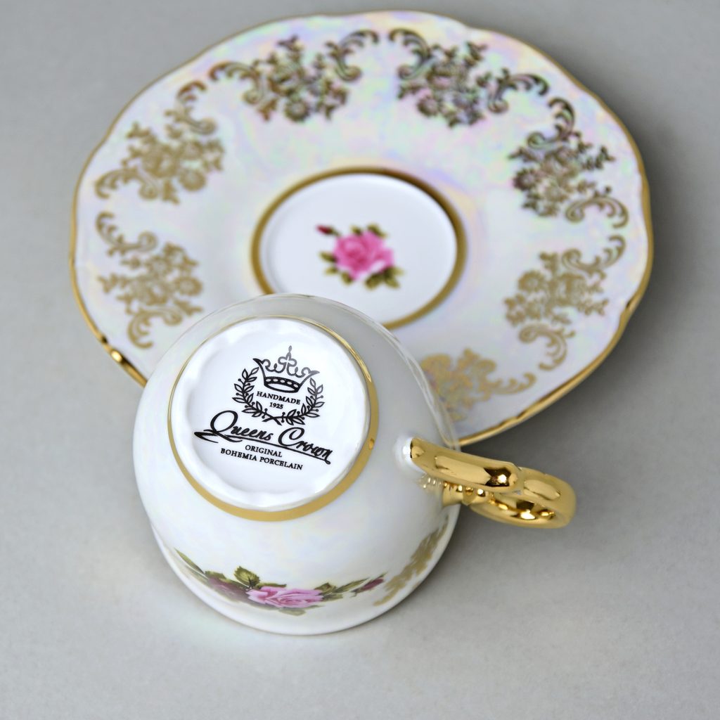 Šálky a podšálky Cecily - růže, porcelán Carlsbad a Queens Crown