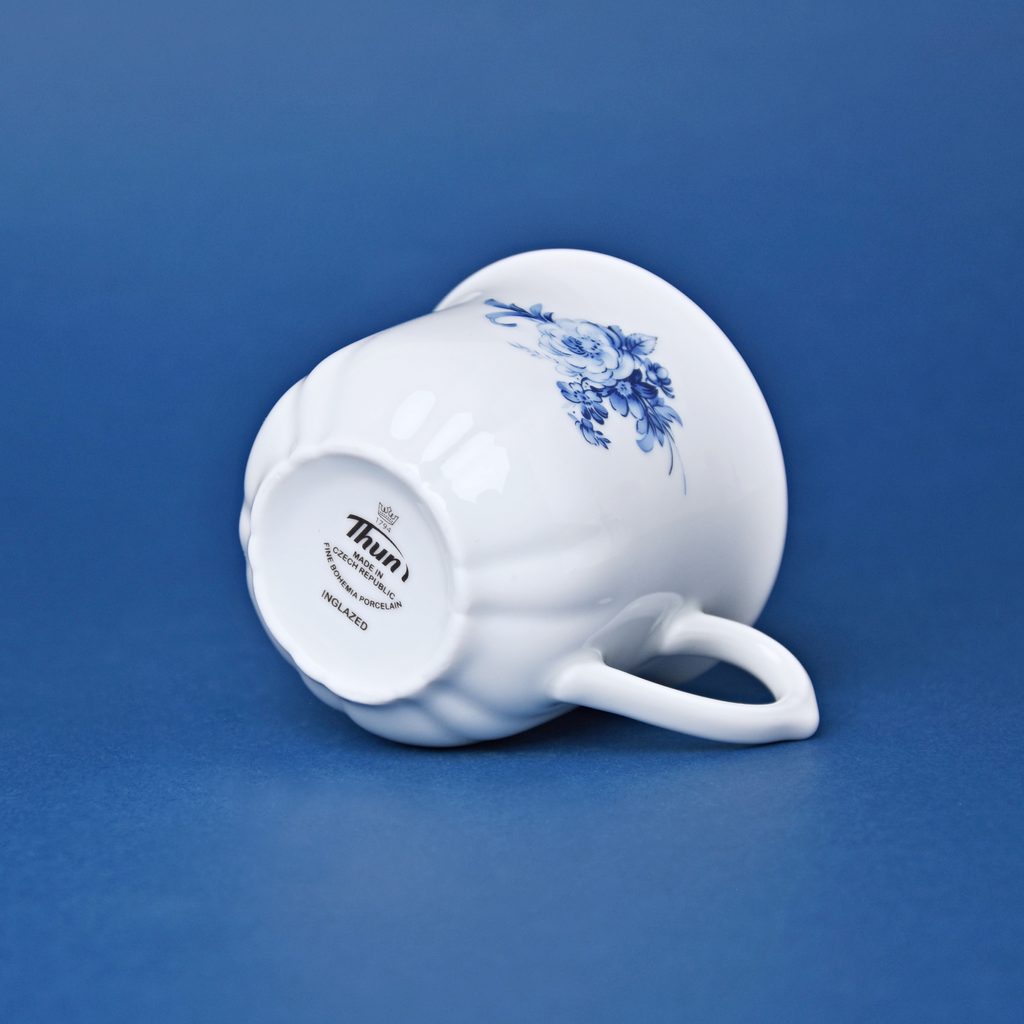 Pouze samostatný šálek. Dekor Rose 80061, Thun 1794 - modrá růže.