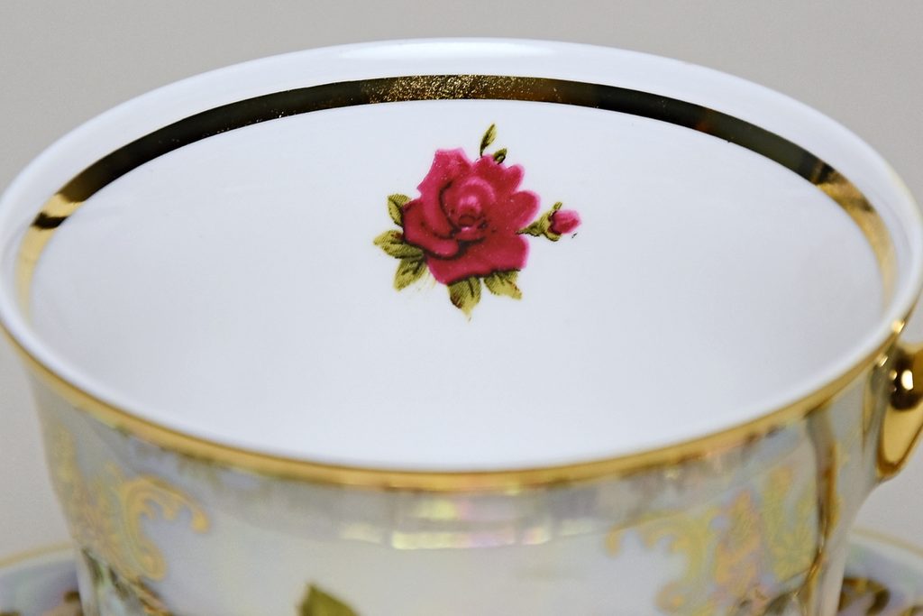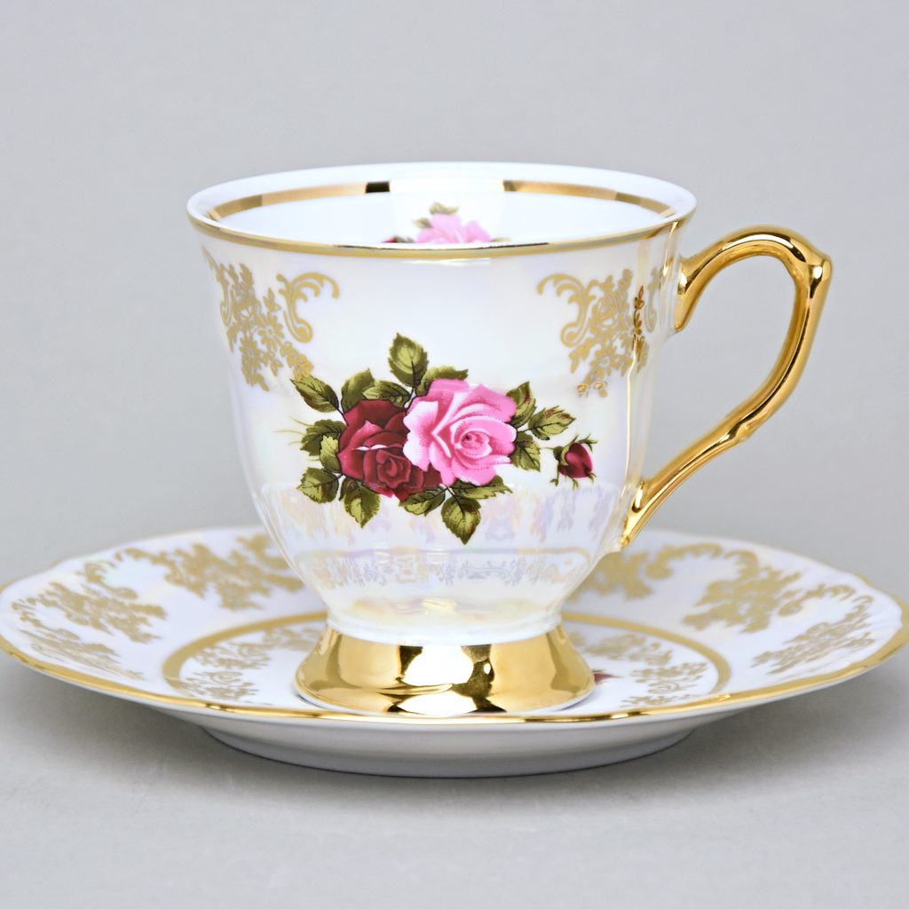Šálky a podšálky Cecily - růže, porcelán Carlsbad a Queens Crown