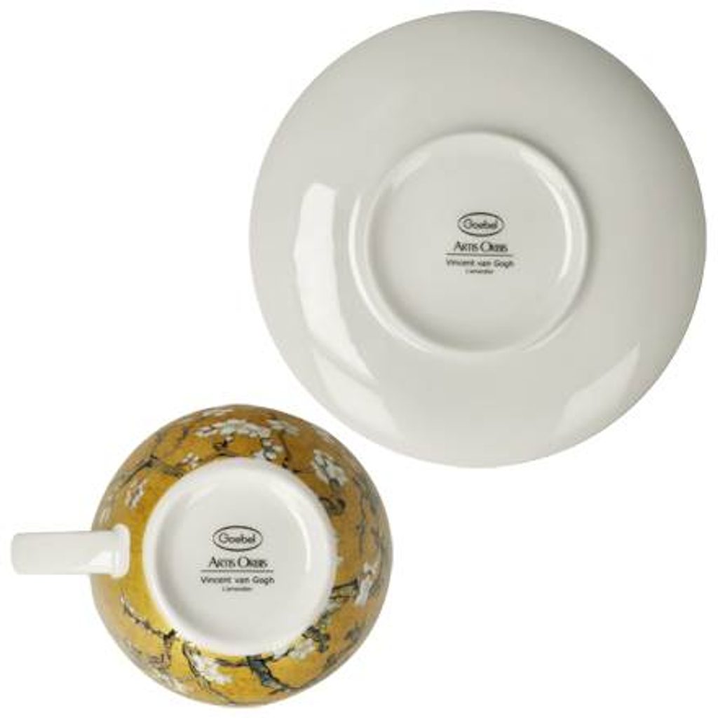Šálek 250 ml a podšálek 15 cm, mandlovník zlatý, V. van Gogh, jemný kostní porcelán, Goebel