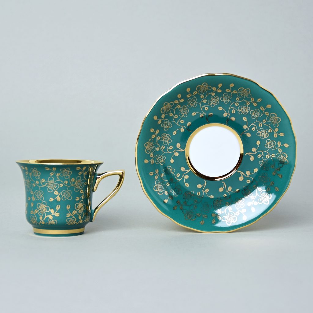 Šálek 80 ml a podšálek mokka Windsor, Tmavě zelená, Leander 1907 Loučky