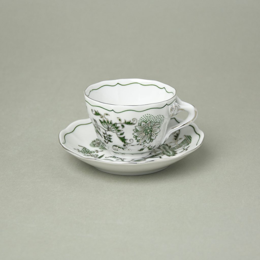 Šálky a podšálky Cibulák zelený s platinou