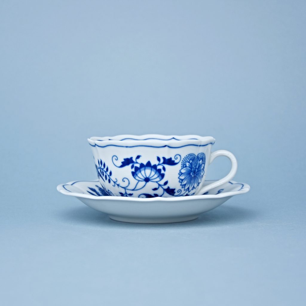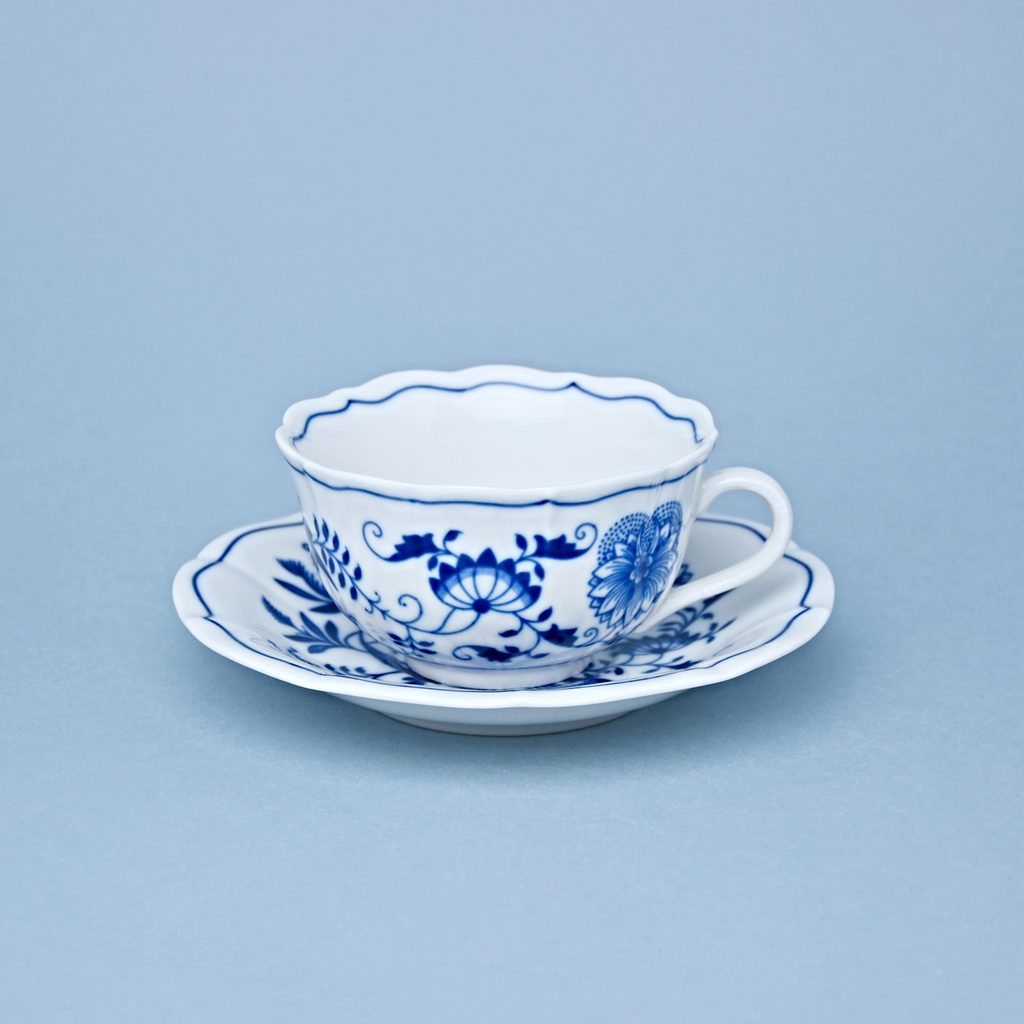 2. jakost. Nejtypičtější šálek na čaj. Krásný ozdobný šálek C/1 o objemu 200 ml s podšálkem ZC1 15,5 cm. Originální Cibulák z Dubí, Český porcelán a.s.