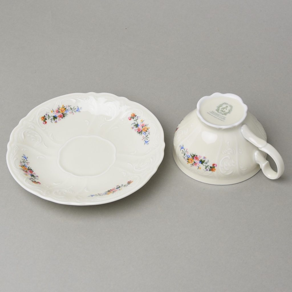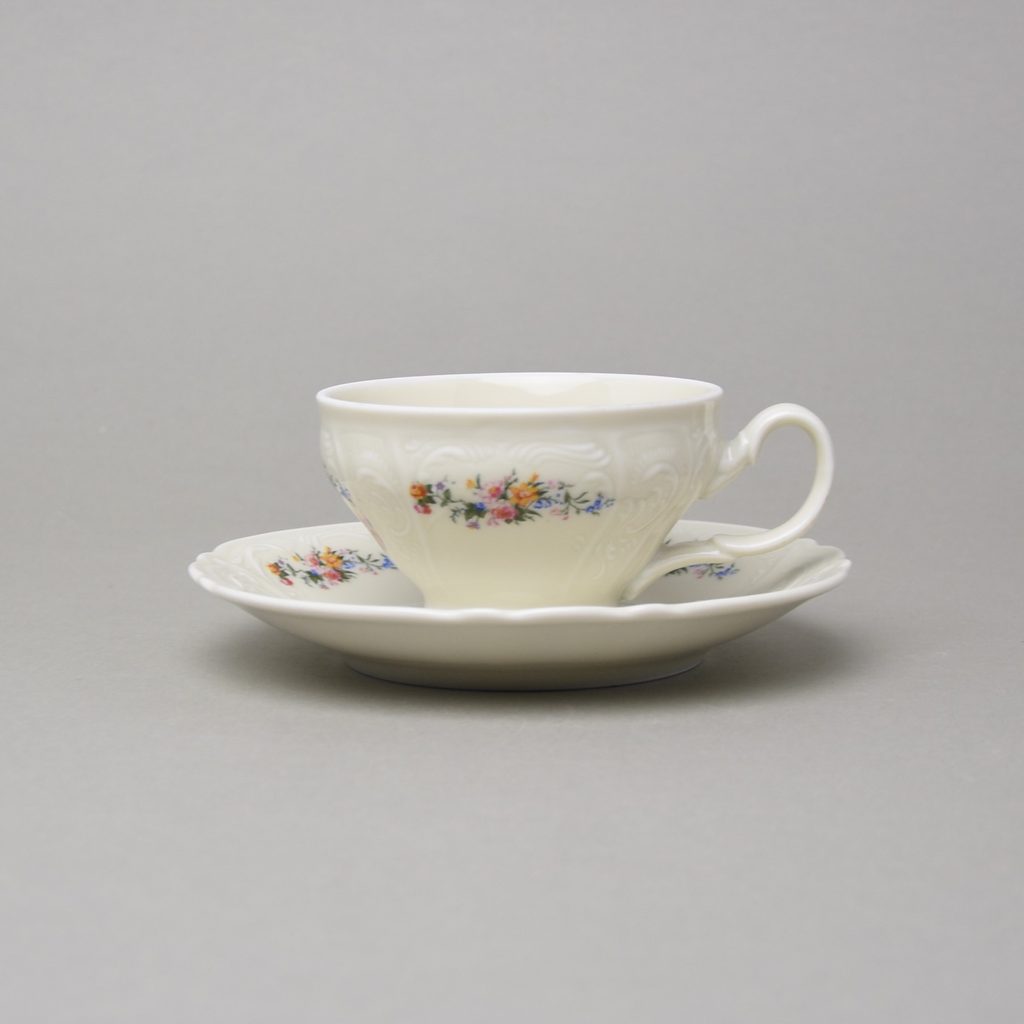 Šálek a podšálek čajový 205 ml / 15,5 cm, Thun 1794, karlovarský porcelán, BERNADOTTE ivory + kytičky