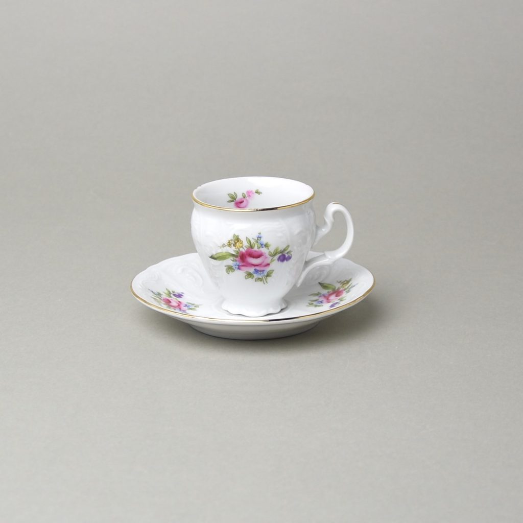 šálek s podšálkem na espresso tvaru Bernadotte, dekor 5309011 "míšeňská růže"